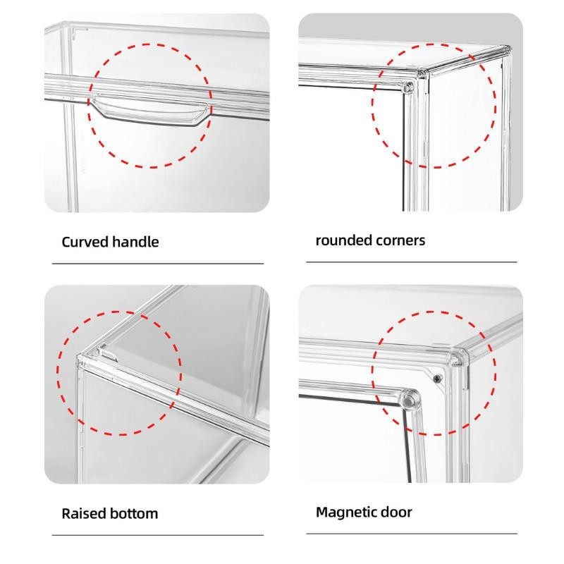 ACRYLIC LUXARY BAG CASE & DISPLAY BOX SIDE DROP MAGNETIC FULLY TRANSPARENT STACKABLE