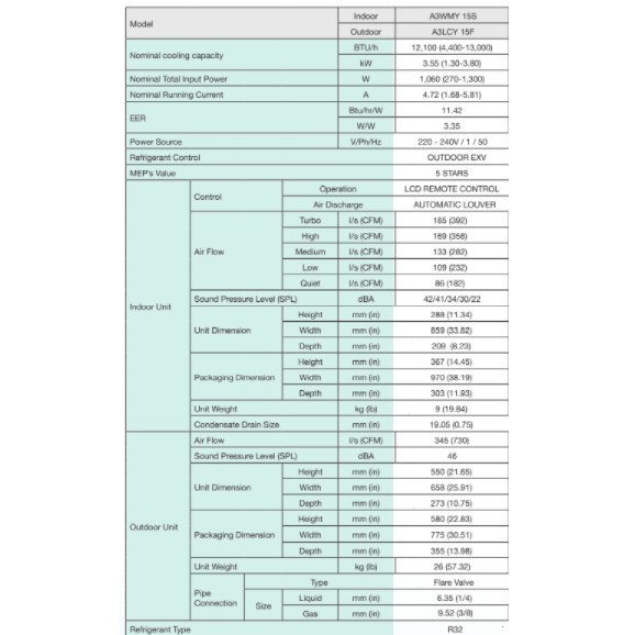 ACSON 1.5HP AIR-COND A3WMY15BNF/A3LCY15BN (R32/INVERTER)