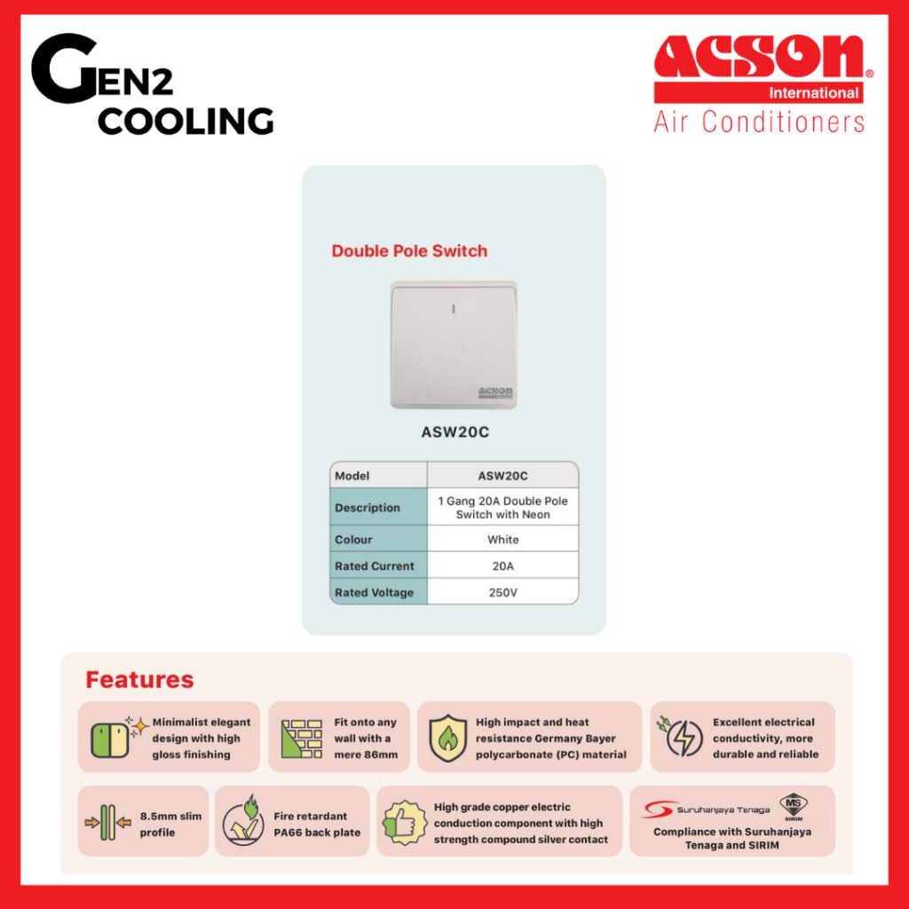 ACSON 20A HEATER/AIRCOND SWITCH - ASW20C