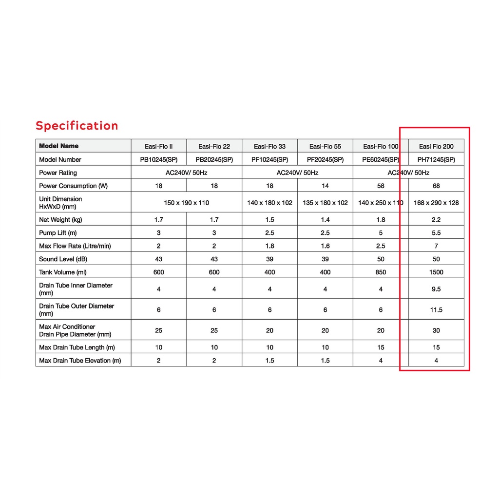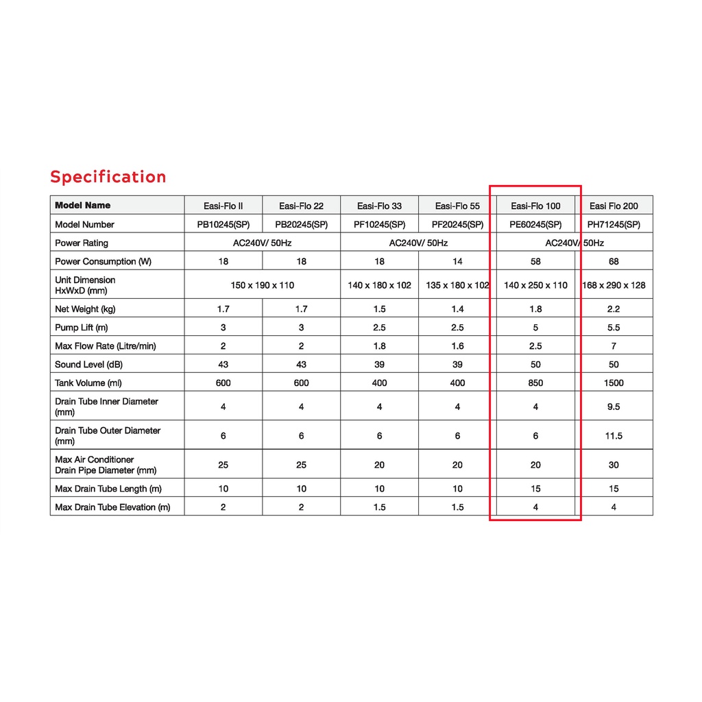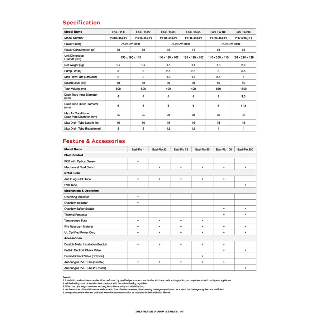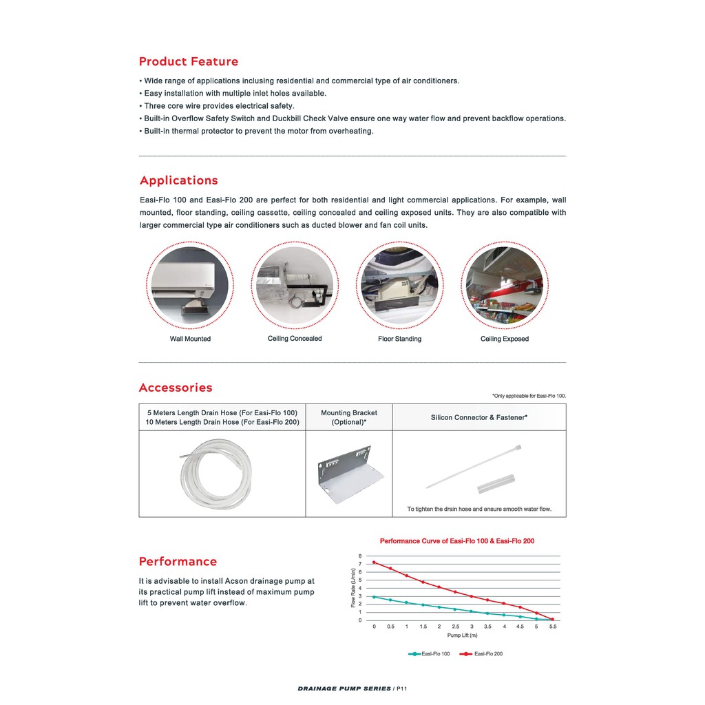ACSON DRAINAGE PUMP DP ( WATER PUMP ) EASI-FLO 100 / EASI-FLO 200