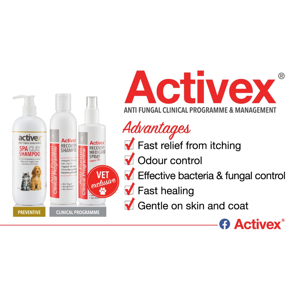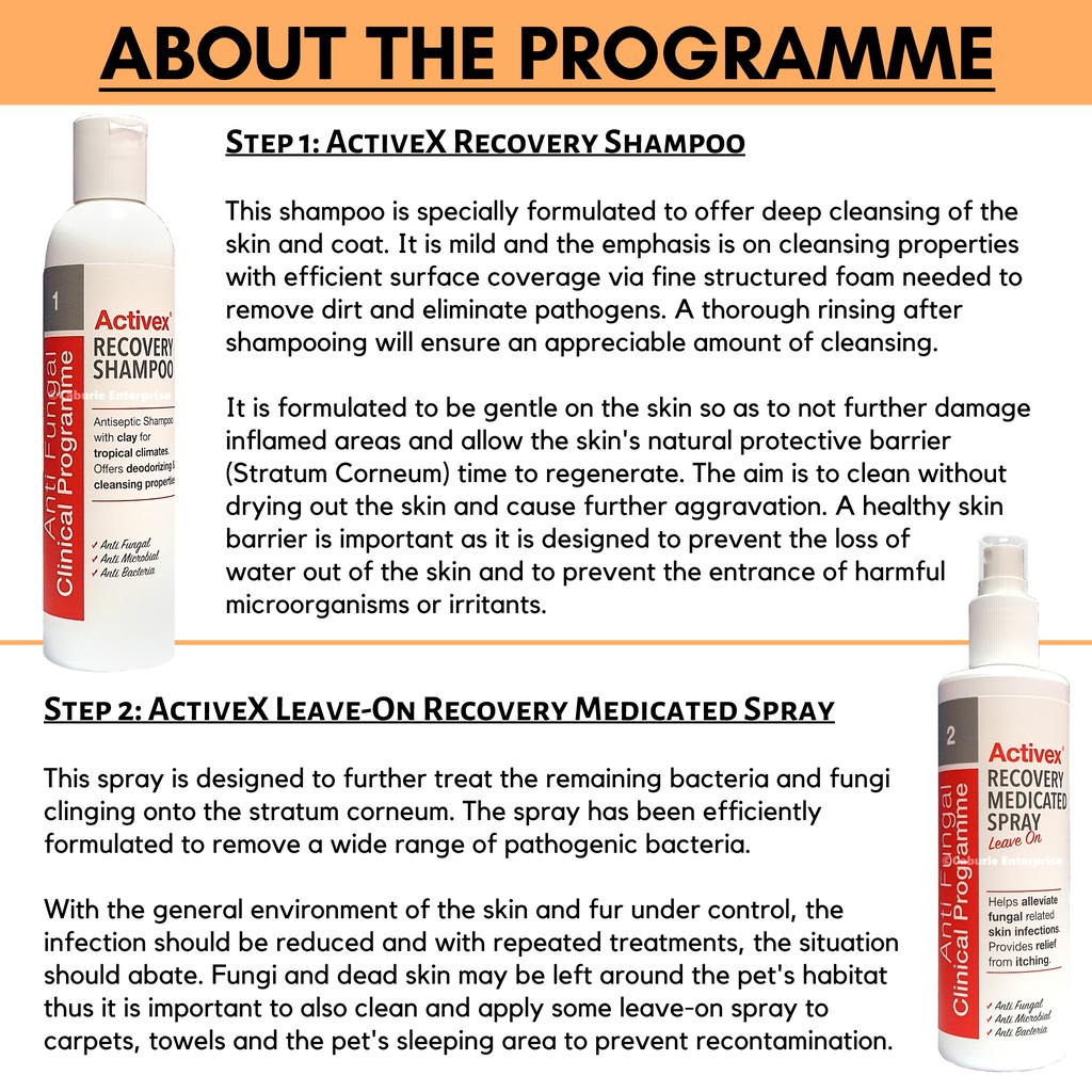 ACTIVEX: Complete Anti-Fungal Treatment Set (250ml) [Recovery Shampoo + Medicated Spray] - For cats & dogs