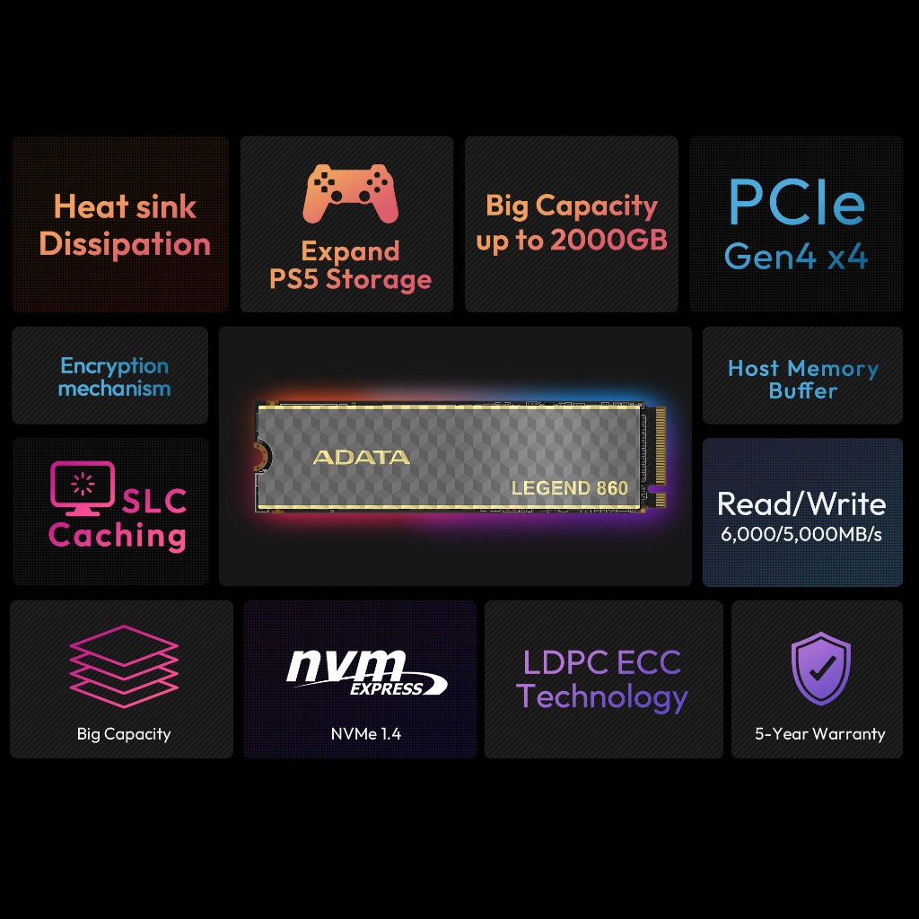 ADATA SSD M.2 Gen4 LEGEND 860 NVMe PCIe Gen 4x4 M.2 2280 SSD 500GB | 1TB | 2TB