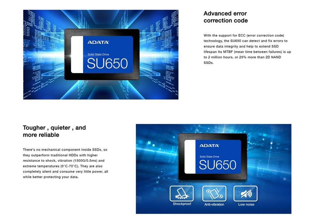 ADATA Ultimate Solid State Drive SSD 2.5" SATA Storage SU630 SU650 120GB/240GB/256GB/480GB/512GB/1TB/2TB