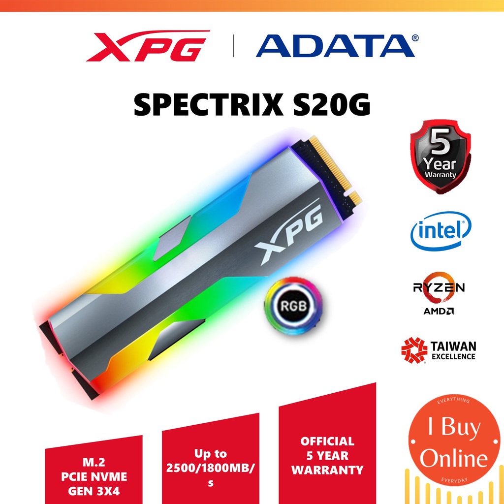 ADATA XPG SSD Spectrix S20G RGB M.2 2280 XPG Gaming PCIe NVMe (500GB/1TB)