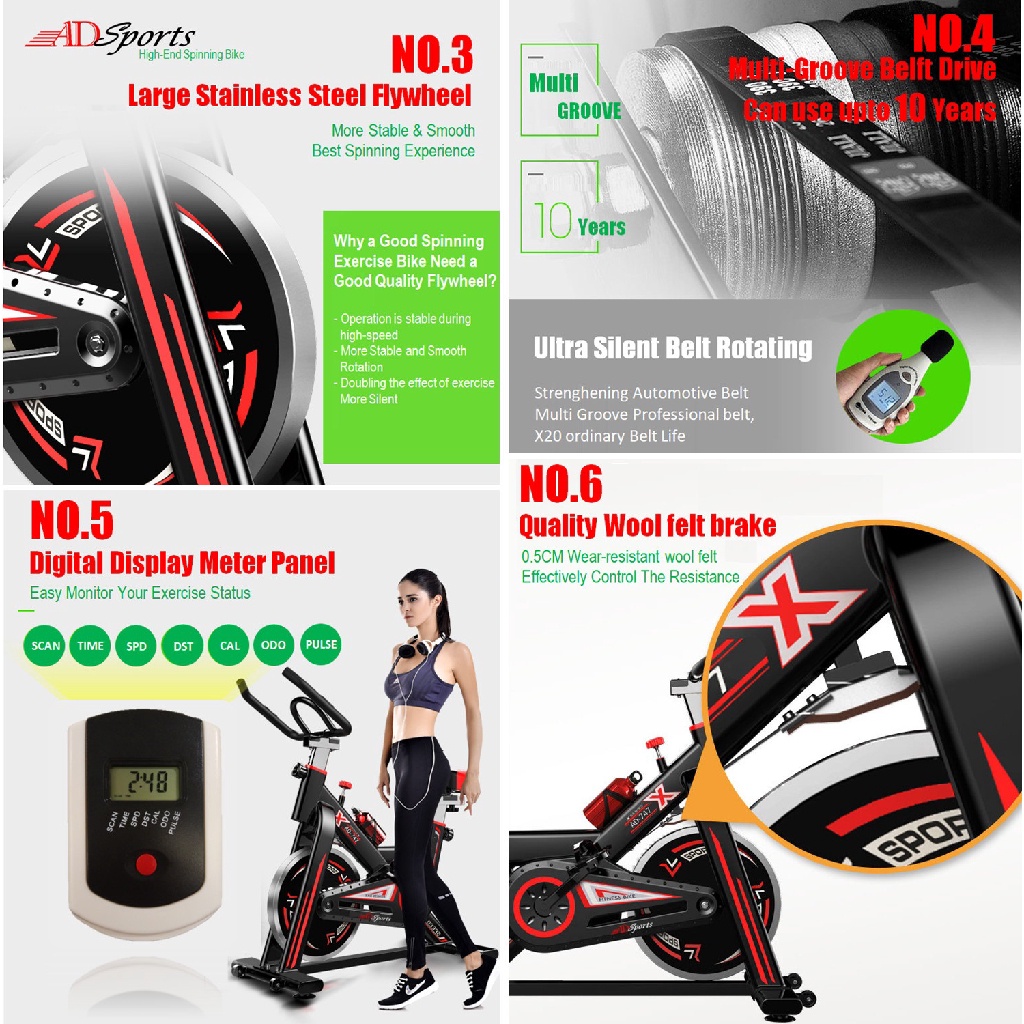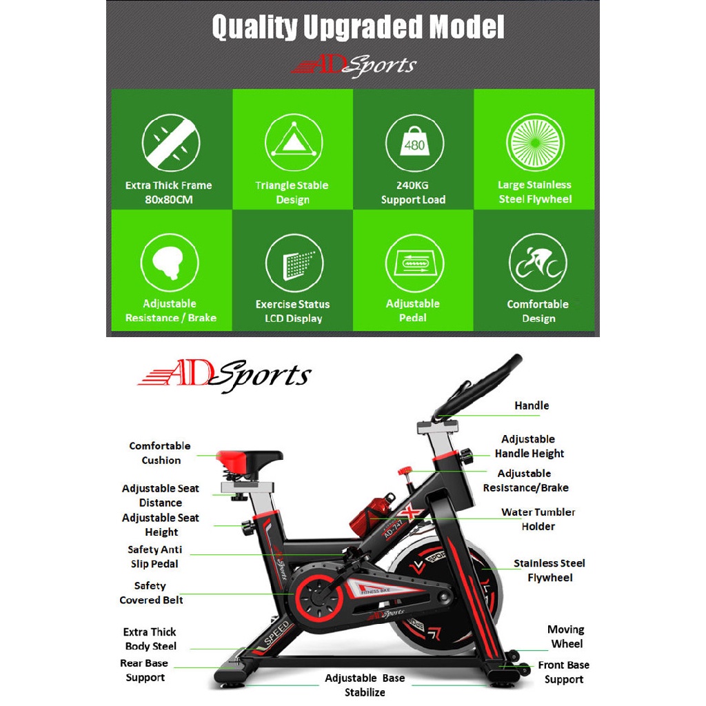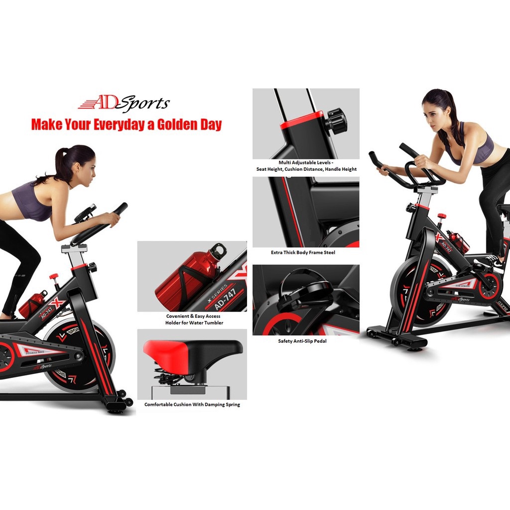 ADSports AD-747 Gym Fitness Home Iron Spinning Bicycle Exercise Bike Indoor Cycling Exercise + FREE Gifts AD747