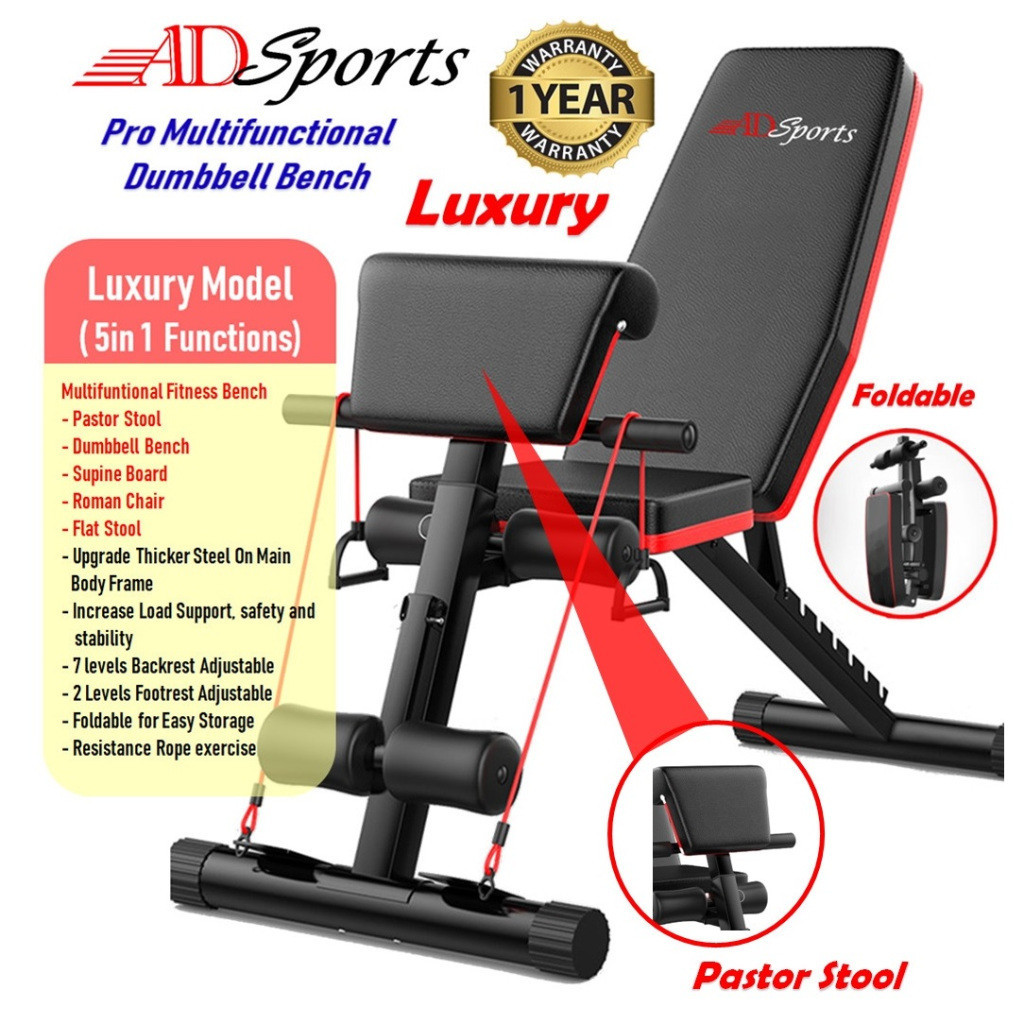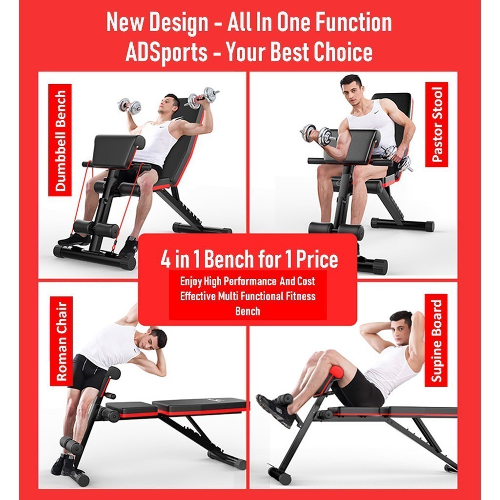 ADSports AD600 All in 1 Adjustable Gym Weight Bench Foldable Sit up Dumbbell Exercise Fitness Bench Chair body workout