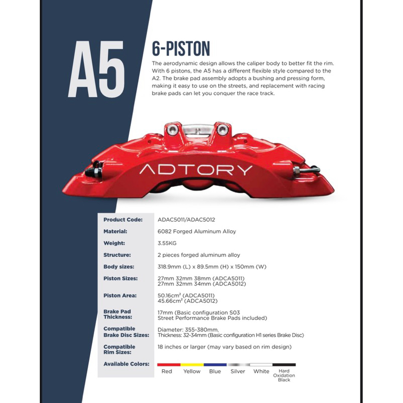ADTORY A5 6POT Big Brake Kit Min 18inch 355mm