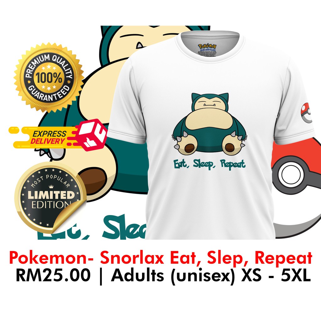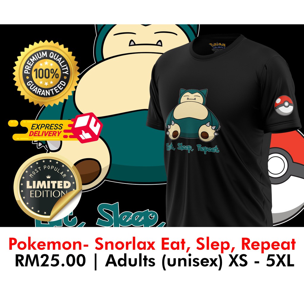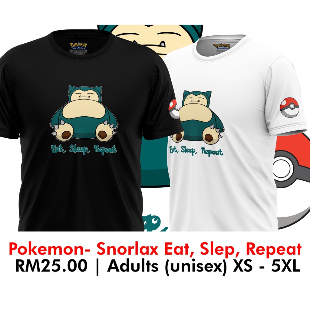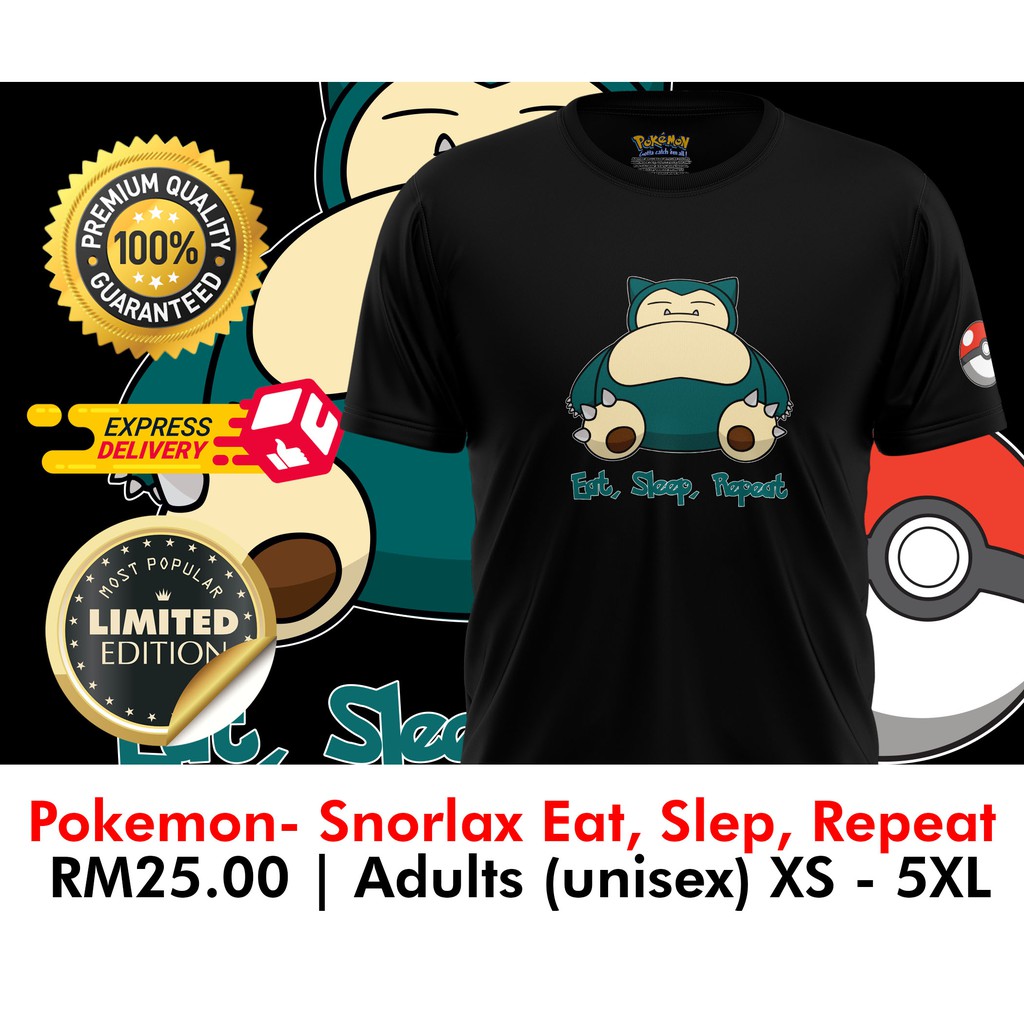 ADULT SHIRTS UNISEX - POKEMON SNORLAX EAT, SLEEP, REPEAT