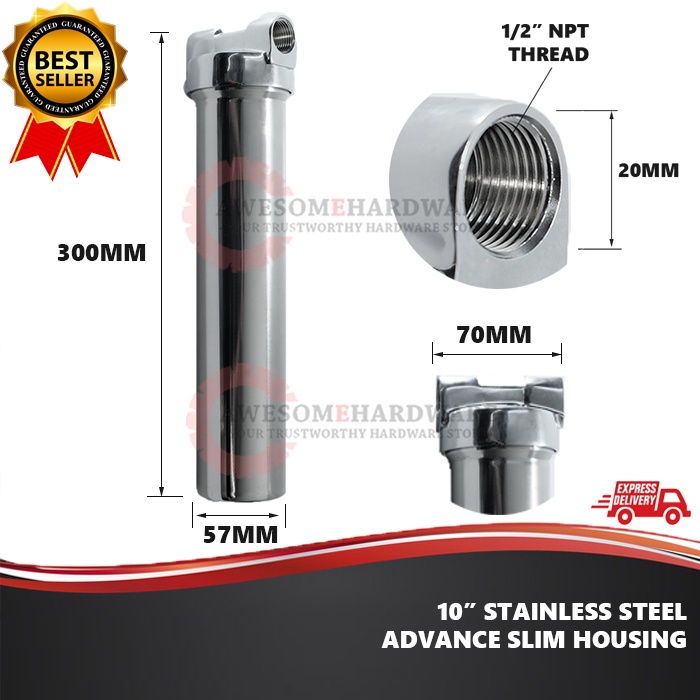 ADVANCE RCM 1/2" SLIM STAINLESS STEEL WATER FILTER HOUSING CASING UNDERMOUNT