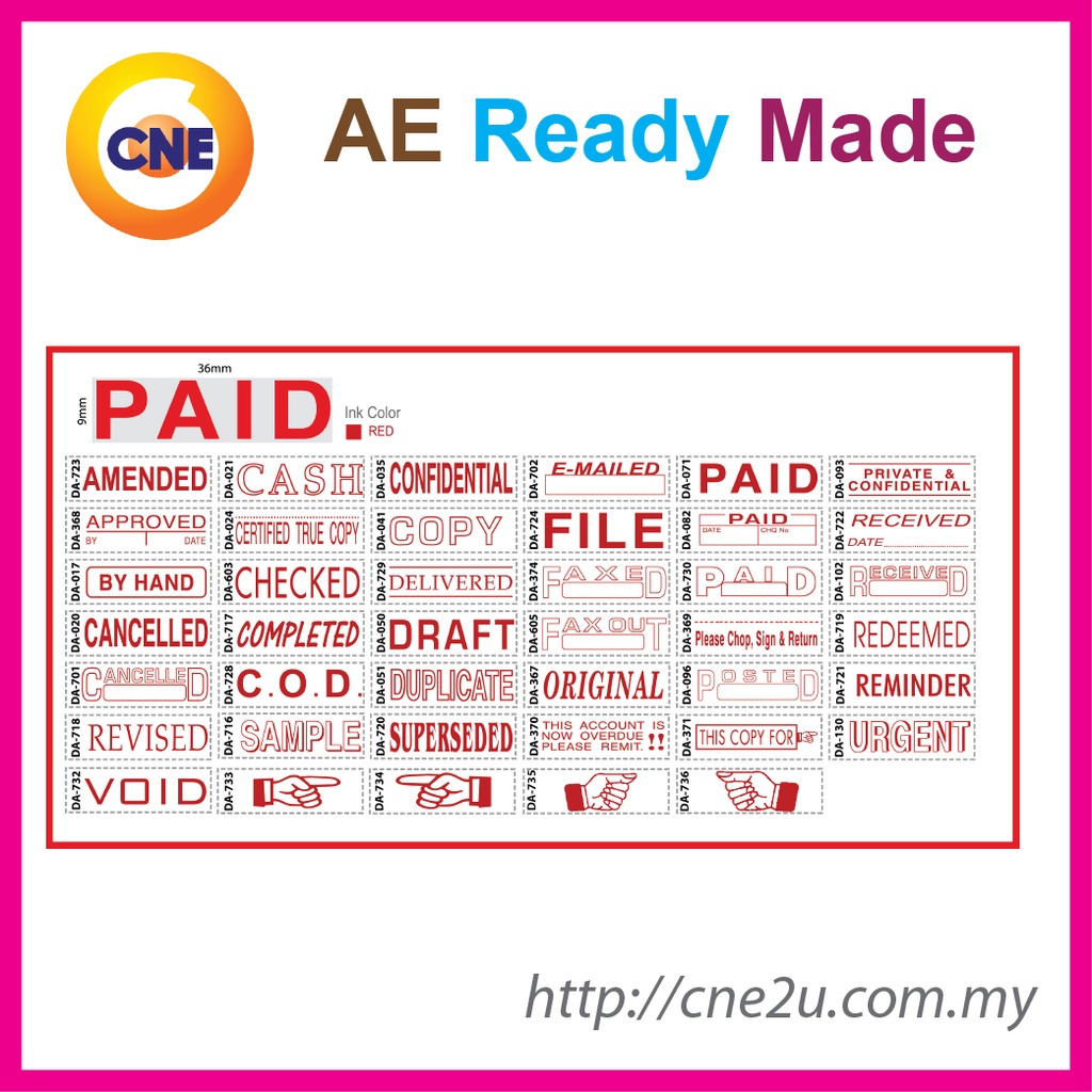 AE Flash Ready Made Stamp / Chop (PAID/DATE/SIGN) Self Ink / OFFICE COPY (Red ink)