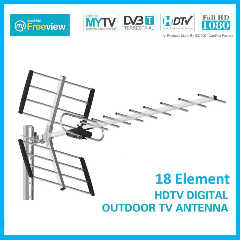 AERIAL DIGITAL ANTENNA 18 ELEMENT ANTENA 18E UHF TULANG IKAN OUTDOOR SIARAN TV MYTV MYFREEVIEW