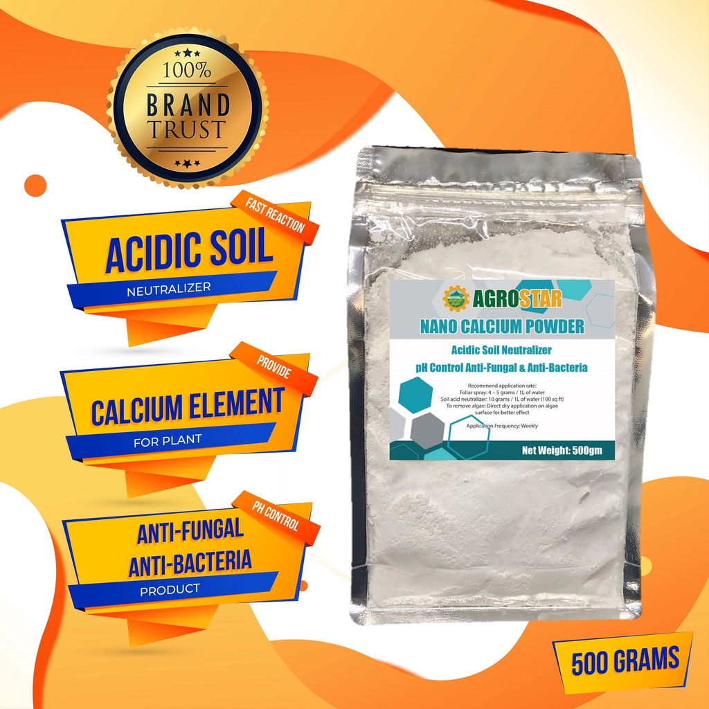 AGROSTAR Nano Calcium Powder For Acidic Soil Neutralizer/pH Control Plant Anti-Fungal Anti-Bacteria (500g)