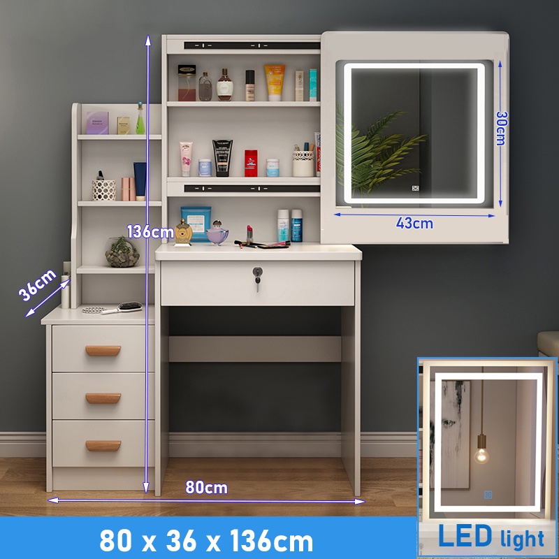 AH Dressing Table & LED Mirror Makeup Drawer Storage Table Cosmetic Table Bedroom Table Vanity Dressing Table Meja Solek