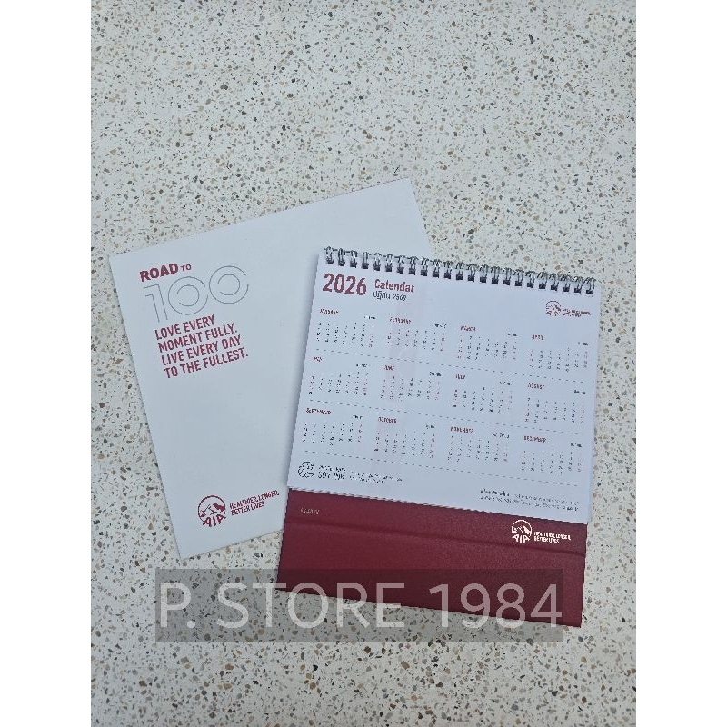 AIA Calendar 2025 2568 // Desk New Year 2568 Gifts Bright Red + With Envelop