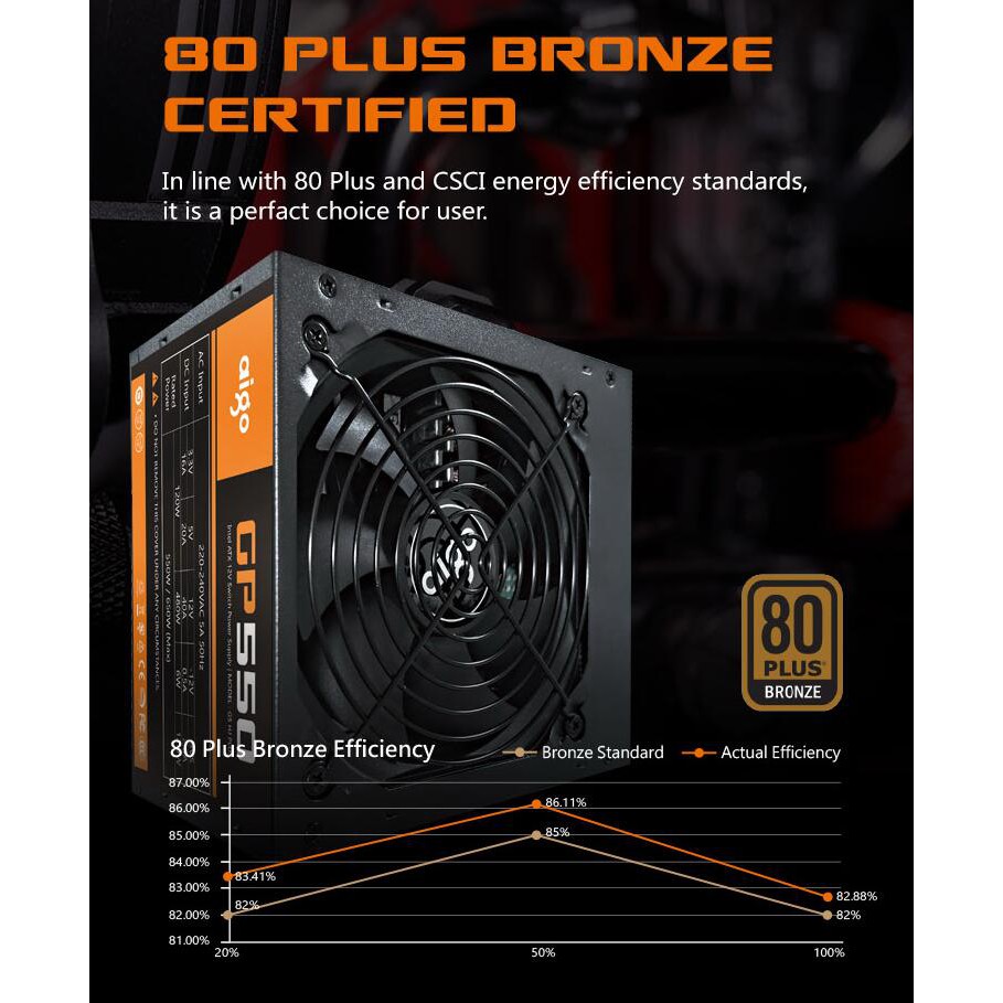 AIGO GP550&GP650 550W / 650W / 750W 80Plus Bronze Power Supply PSU - 3 Years Warranty