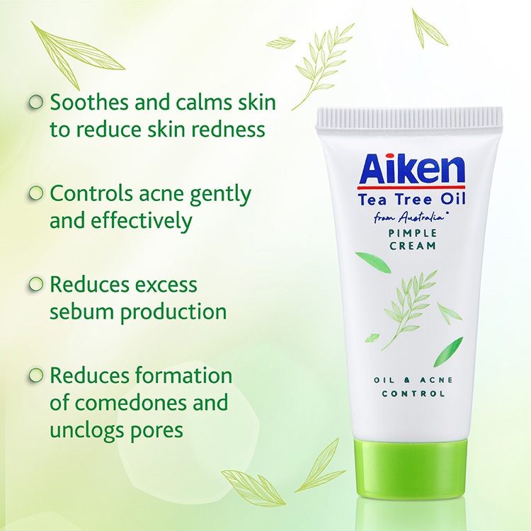 Aiken Tea Tree Oil Pimple Cream 15g | Controls Acne Gently & Effectively | Reduces Skin Redness | Soothes & Calms Skin