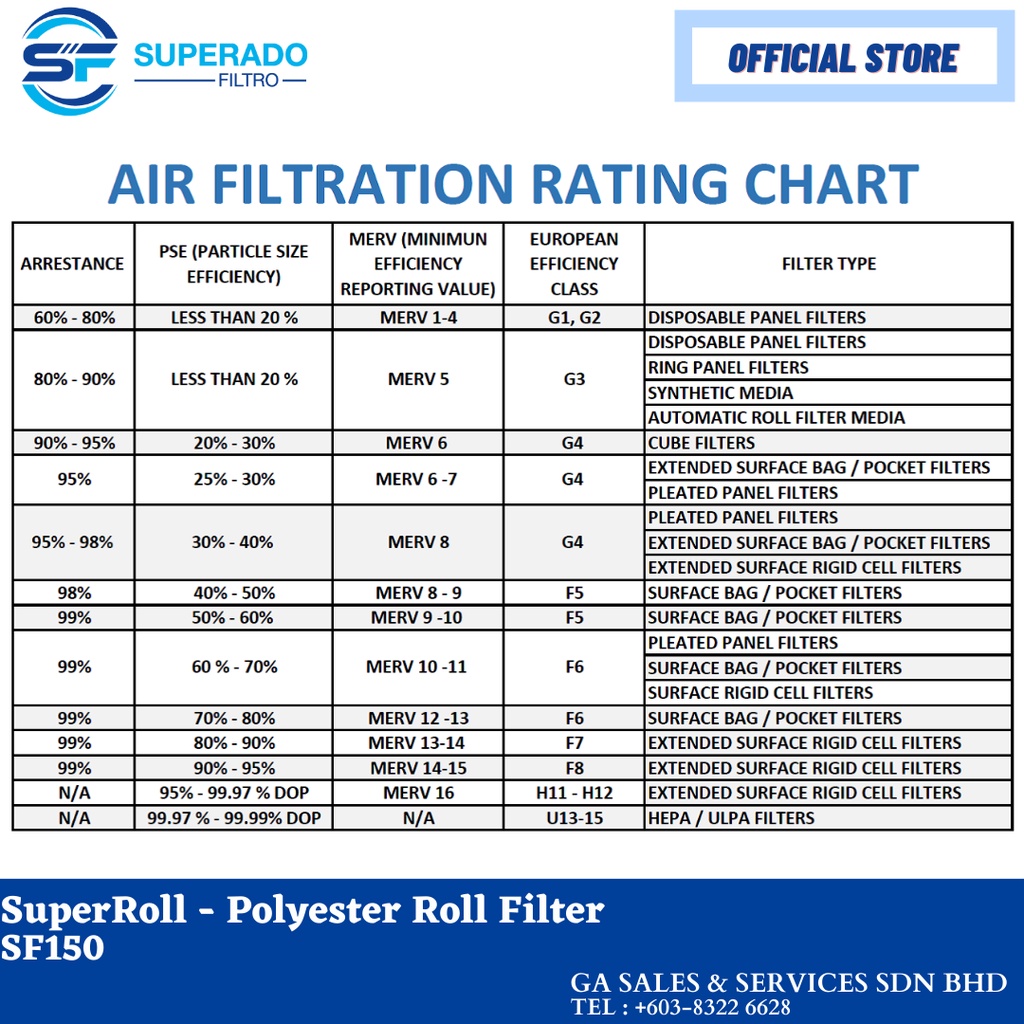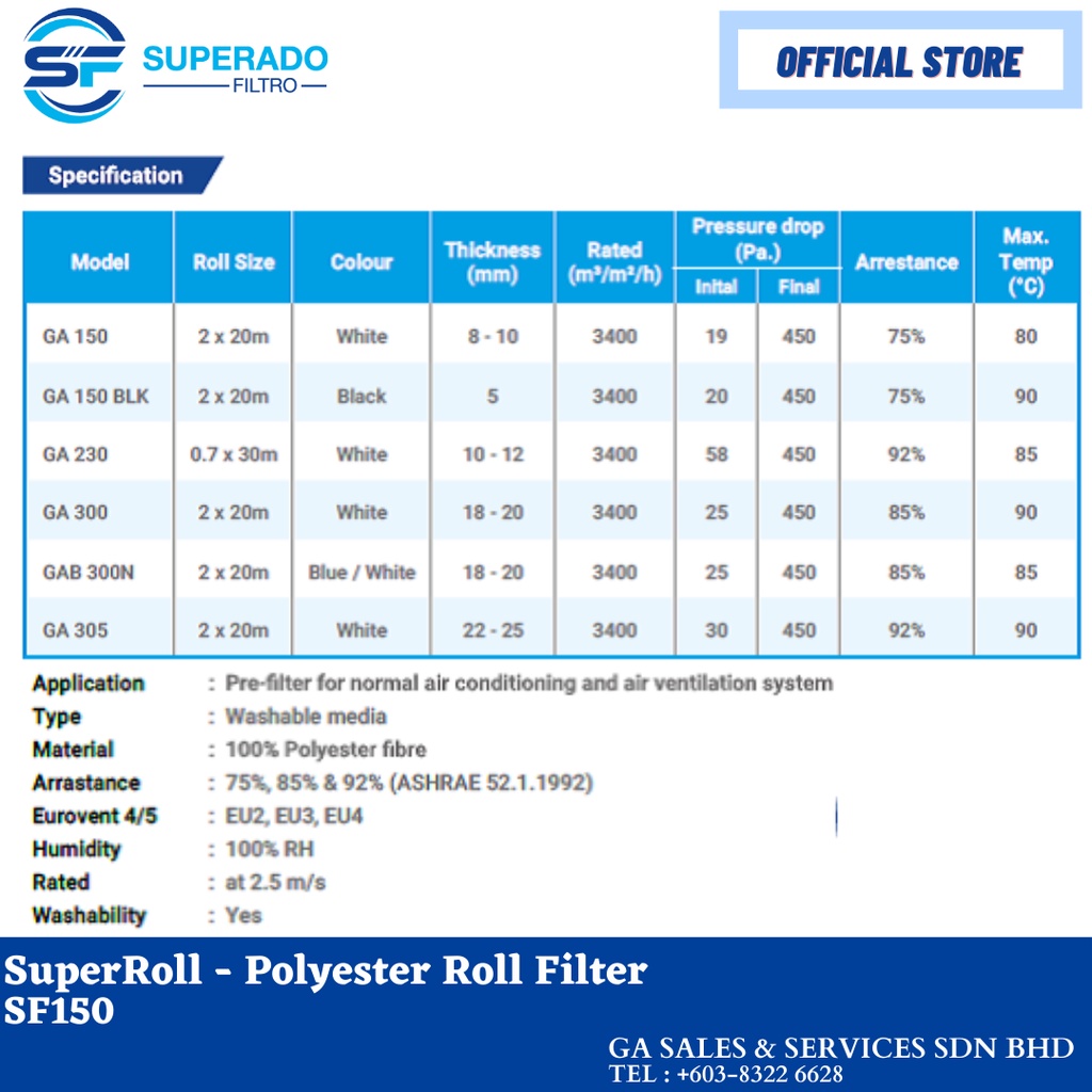 AIR FILTER/FILTER MEDIA ROLL, PRIMARY FILTER, COTTON AIR FILTRATION, SUPERROLL-POLYESTER ROLL FILTER SF150, WHITE COLOR.