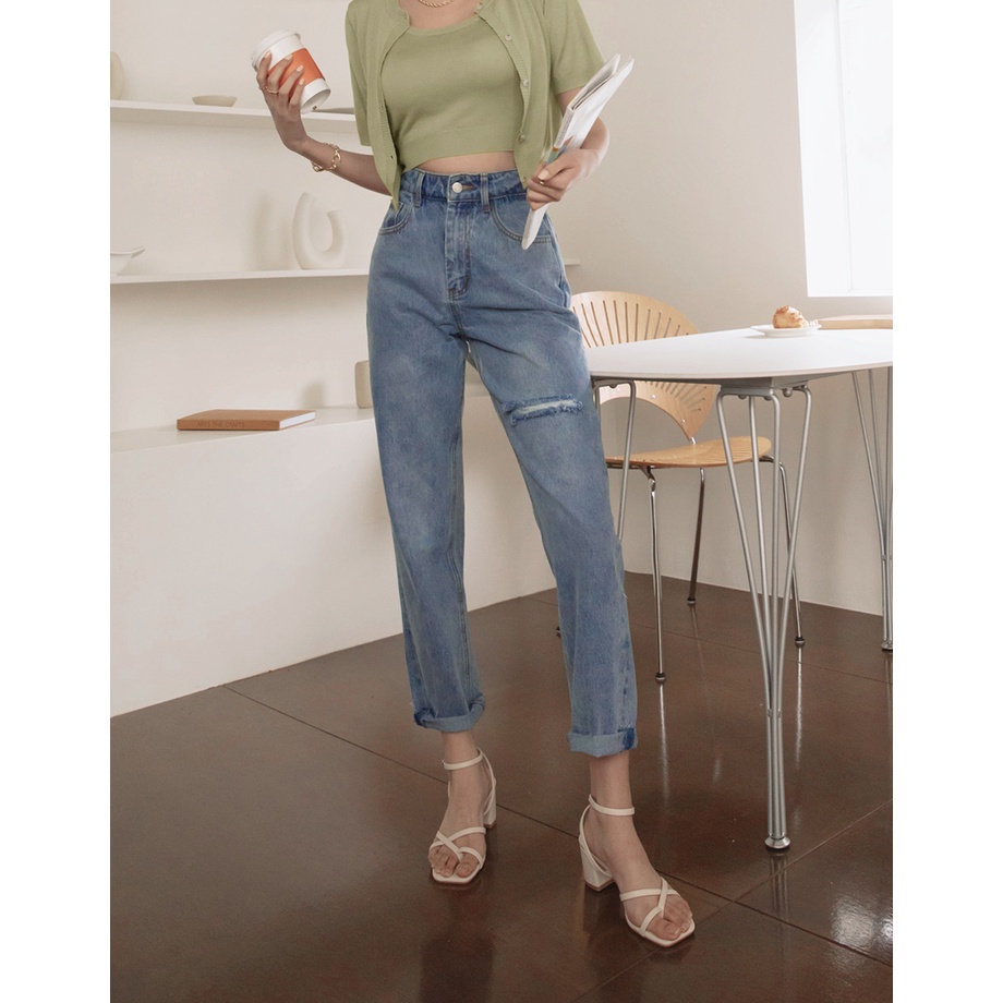 AIR SPACE Boyfriend Style Ripped Denim Pants