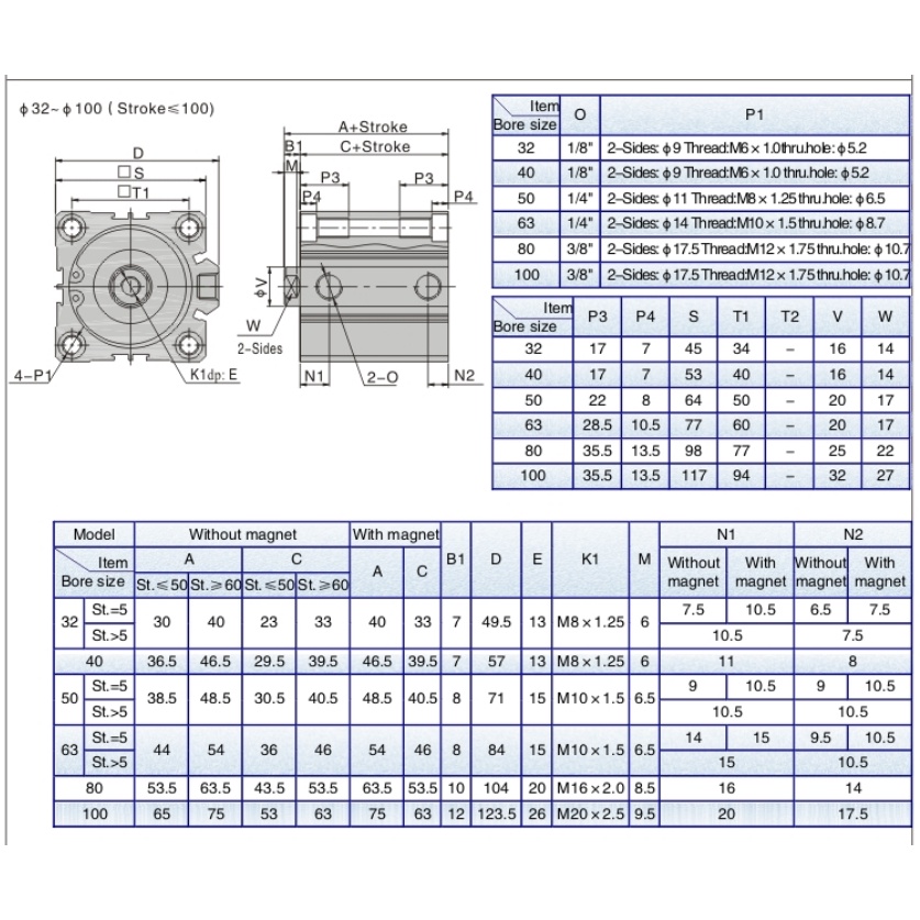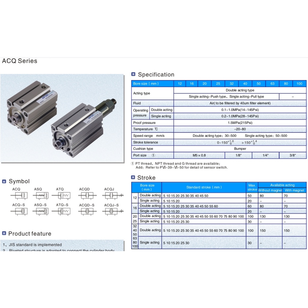 AIRTAC ACQ SERIES PNEUMATIC COMPACT AIR CYLINDER ACQ50 (BORE SIZE 50MM)