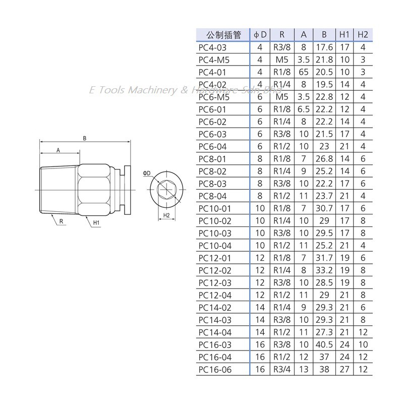 AIRTAC / BLCH [READY STOCK] PC Male Straight Pneumatic One-Touch Fitting Push In Connector Tube 6mm