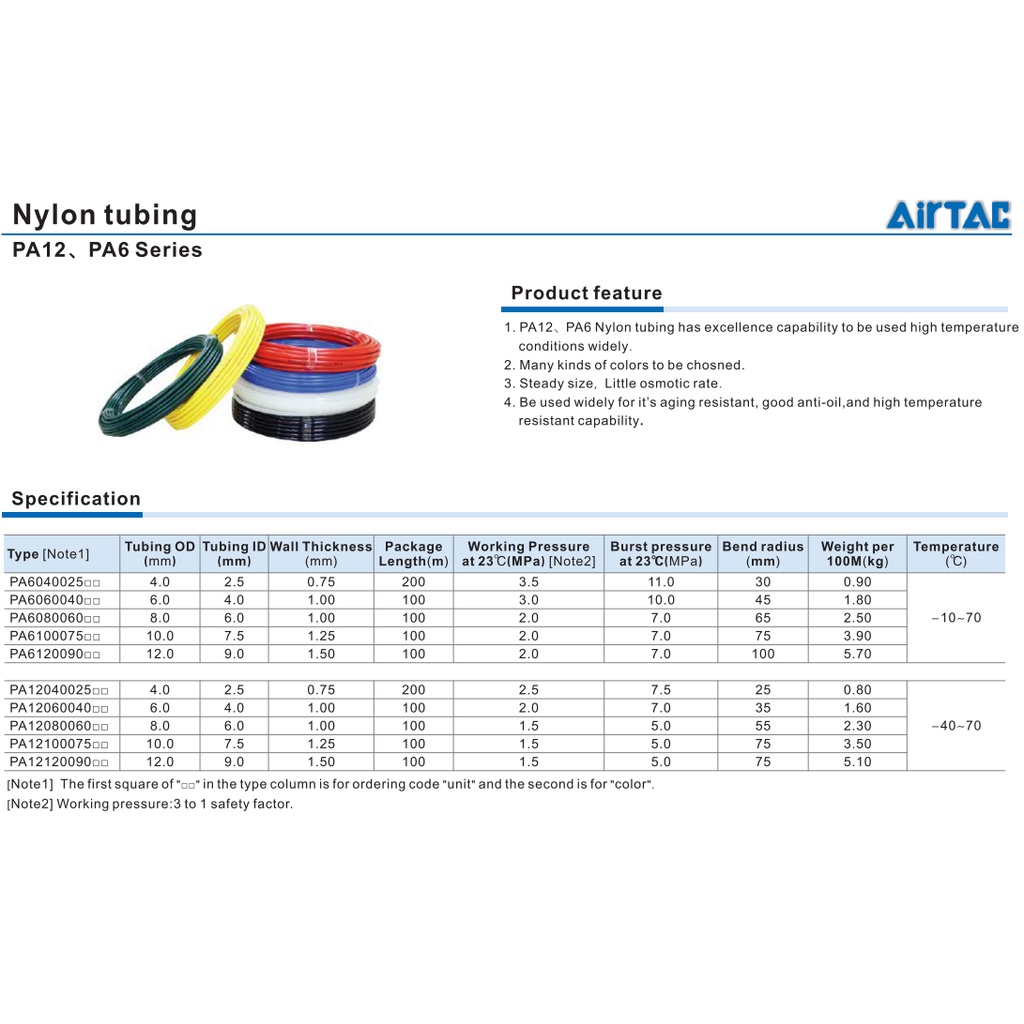 AIRTAC PA6 SERIES PNEUMATIC NYLON TUBING , NYLON TUBE , NYLON HOSE (PRICE FOR PER ROLL)