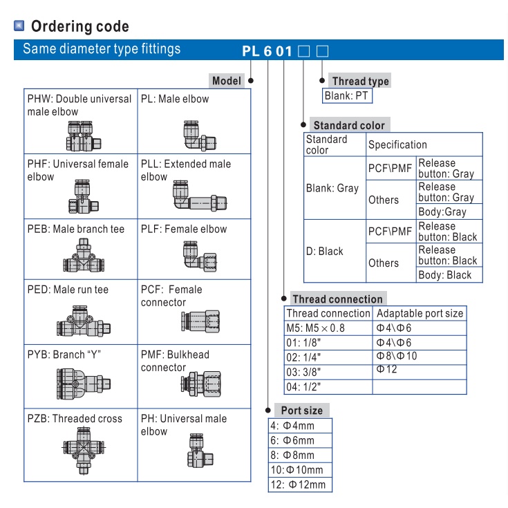 AIRTAC PCF SERIES (BLACK COLOUR) PNEUMATIC ONE-TOUCH FITTING PUSH IN FEMALE CONNECTOR PCF4 PCF6 PCF8 PCF10 PCF12