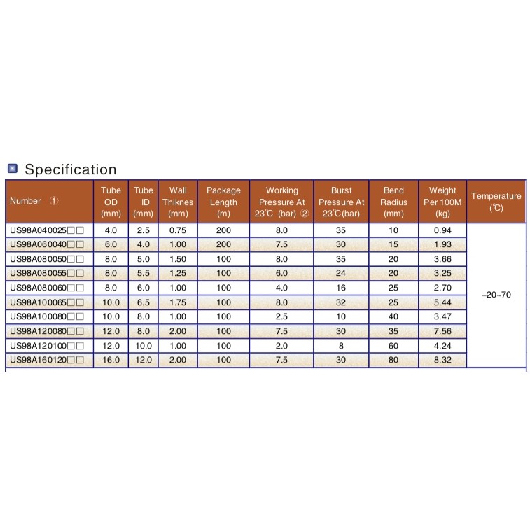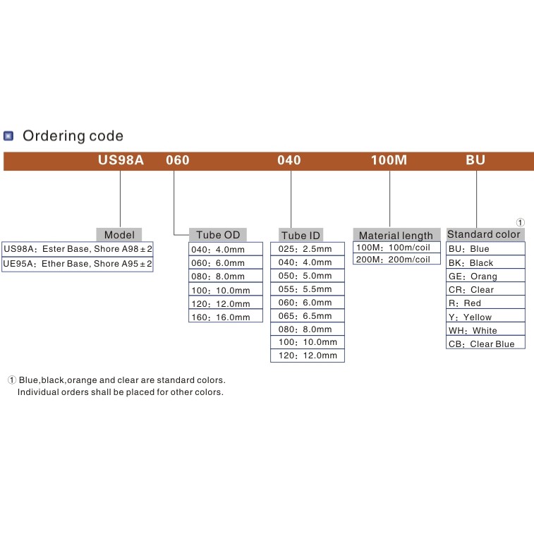 AIRTAC US98A SERIES PNEUMATIC POLYURETHANE TUBING , PU TUBE , PU HOSE , AIR HOSE (PRICE FOR 1 ROLL [100 METER])