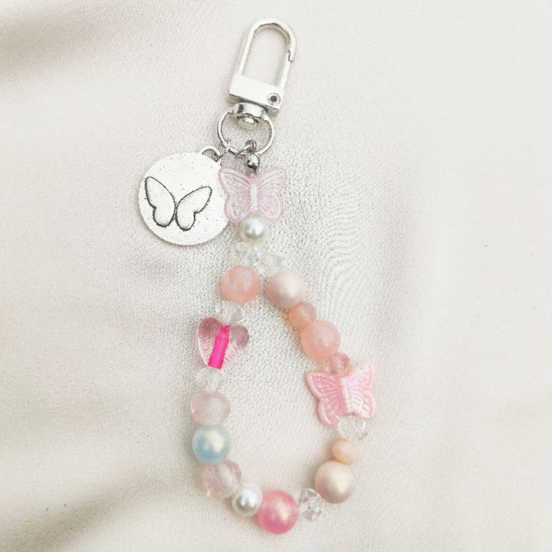 AISA. Handmade Cute beaded keychain pastel color butterfly Keychain for Earphone