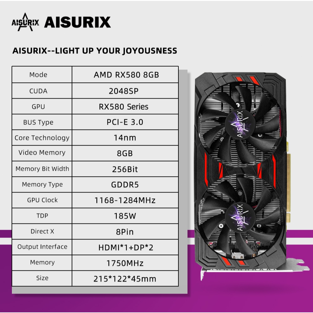 AISURIX Brand New Graphics Card RX 580 8GB AMD Radeon Computer GPU Video Card For Gaming Black Myth Wukong Work Office