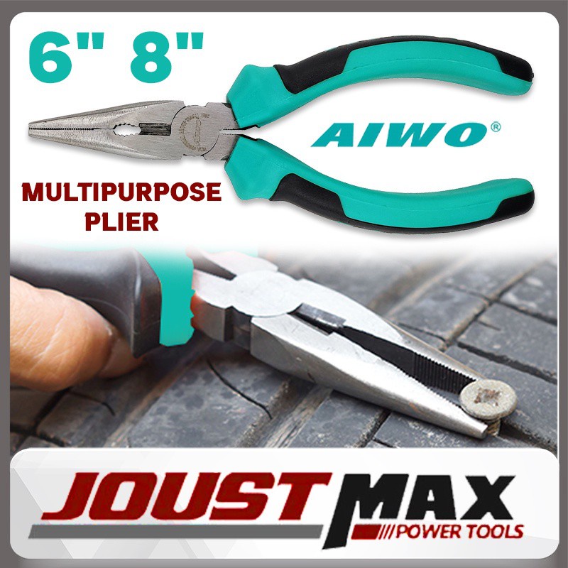 AIWO 6" 8" LONG NOSE PLIER HAND TOOL CUTTER WIRE STRIPPER PIPE GRIP JAWS ANTI SLIP HANDLE