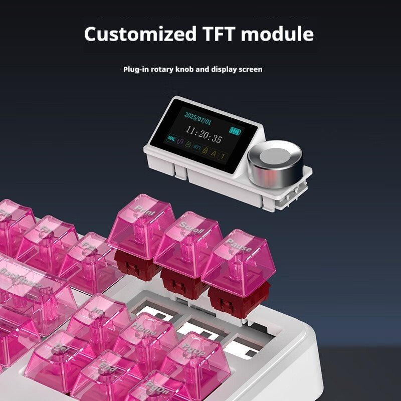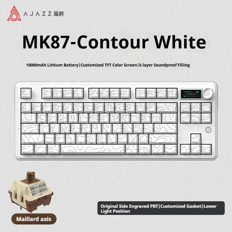 AJAZZ MK87 Gaming Wireless Bluetooth Tri-mode Keyboard Full Key Hot Swappable Gasket 10000mAh Battery RGB Light Keyboard TFT Screen Keyboards with Knob