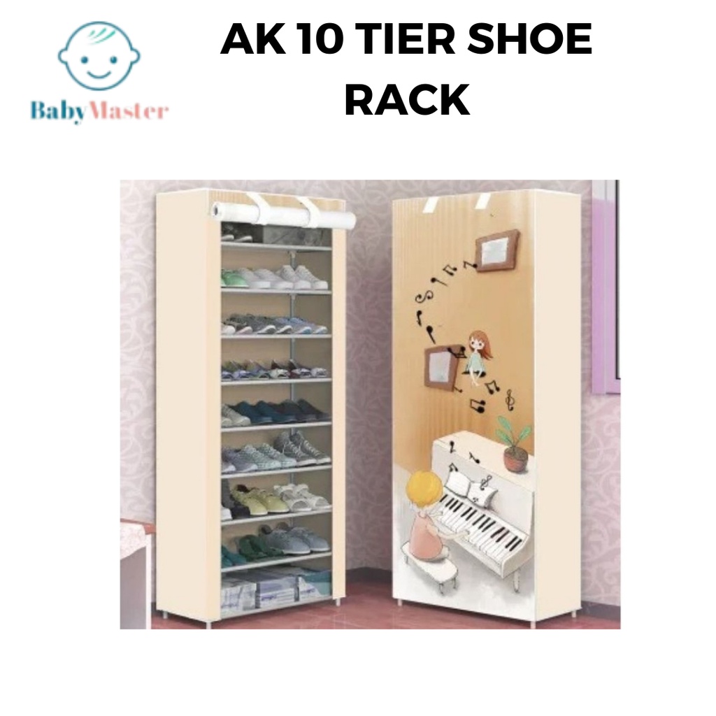 AK 10 Tier Shoe Rack 10 Tier Shoe Rack Dustproof Non-woven Cloth Fabric Assembly Shoe Storage Shoe Rack