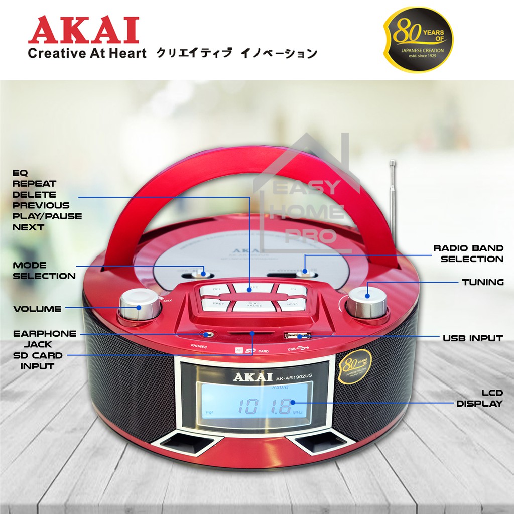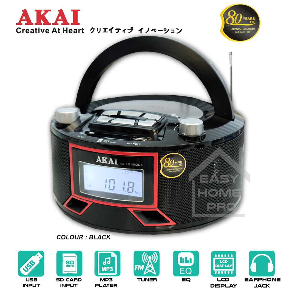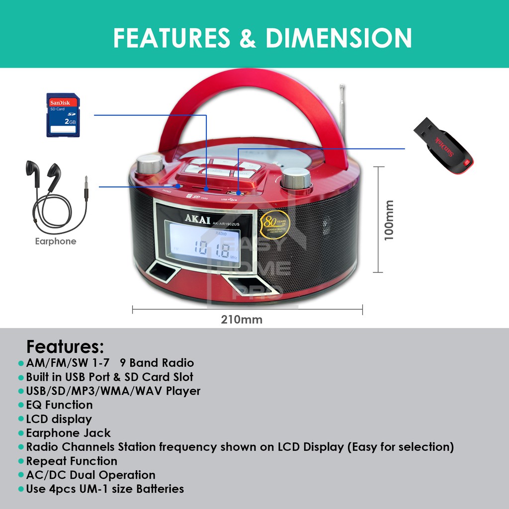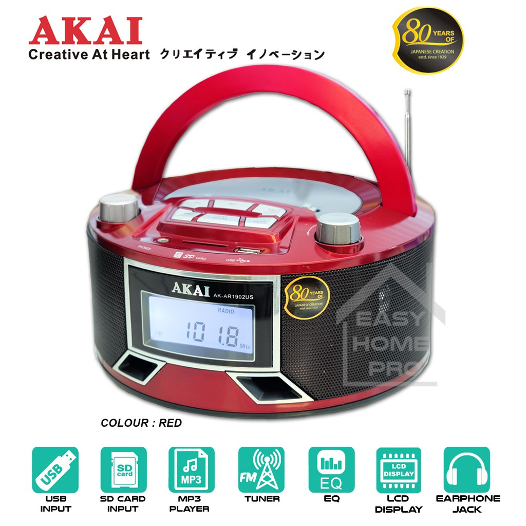 AKAI AK-AR1902US FM/AM/SW 9 BAND PORTABLE RADIO MULTIBAND RADIO RECEIVER WITH USB/SD INPUT