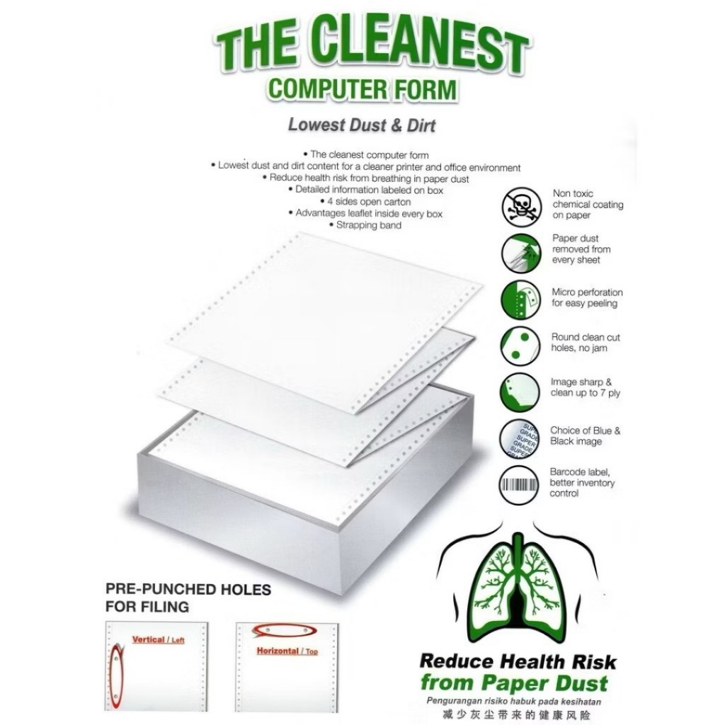 AKIRA 9.5" x 11" 4 Ply 230 Fans NCR A4 Computer Form White Continuous Paper Invoice Billing Printer Paper (ALL WHITE)