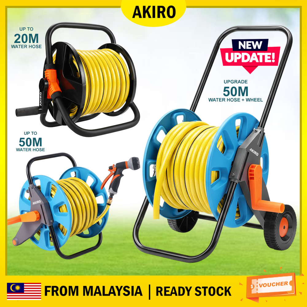 AKIRO 50M Garden Water Hose Reel Holder Water Pipe Roll Storage Rack Water Pipe Holder Rak Pengulung Paip Air 水管卷盘