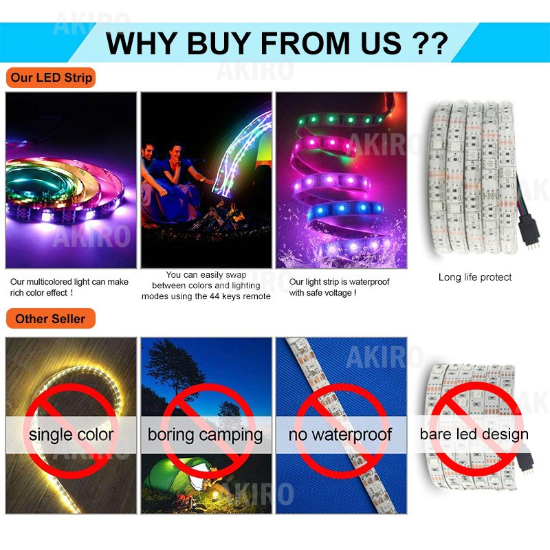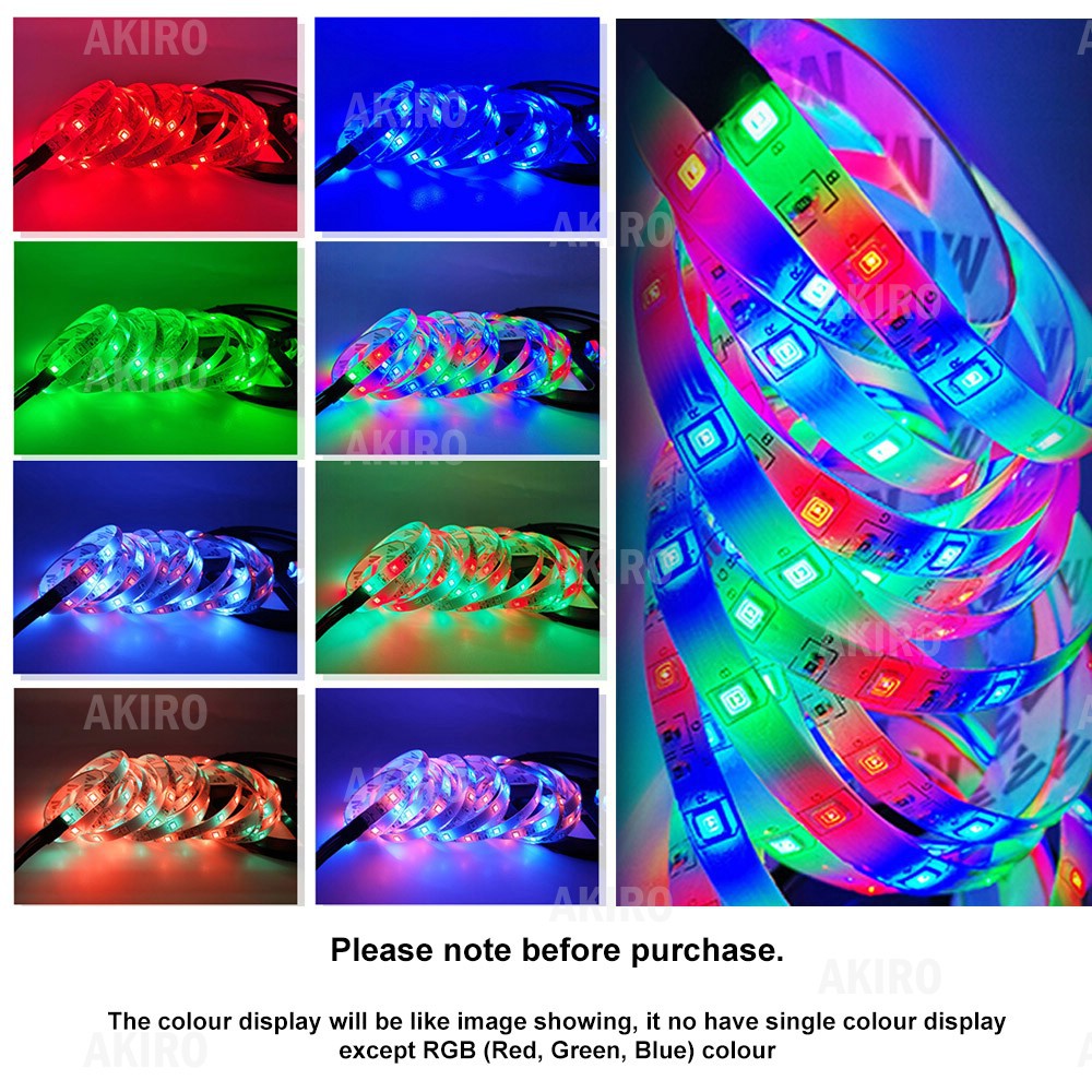 AKIRO 5M Waterproof 300 LED Strip 3528 RGB Color Malaysia Adapter Remote RGB LED Light TV LED Backlight -