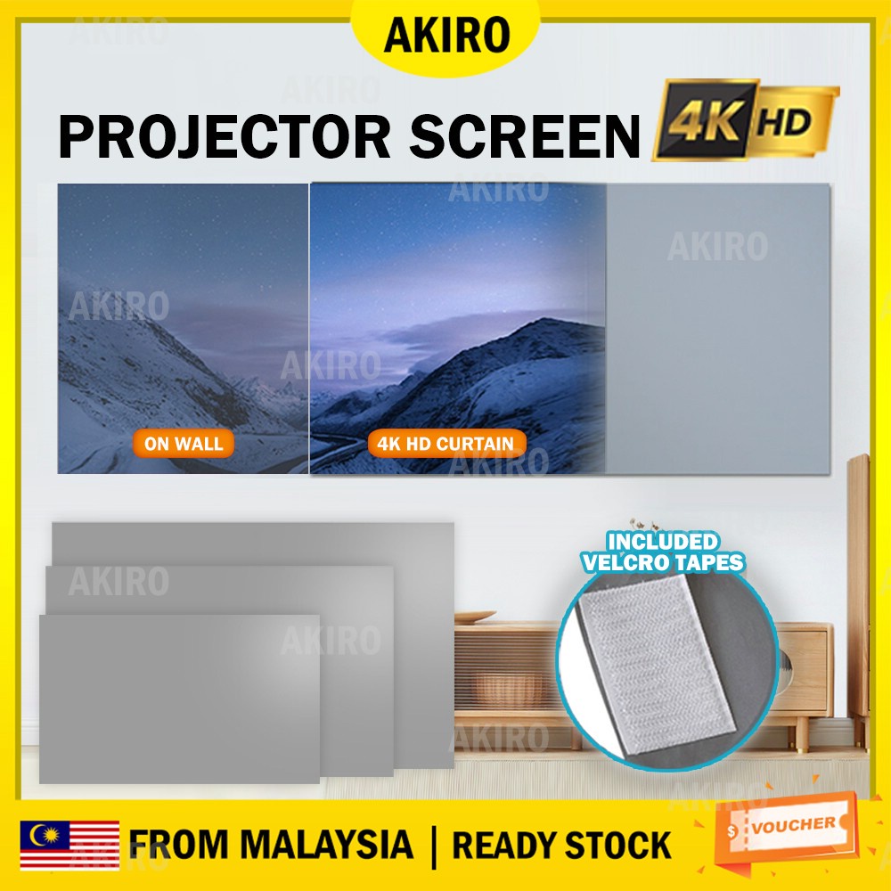 AKIRO Portable Projector Screen Anti-light Metal Curtain 60-130in 16:9 HD Folding Reflective Fabric Projector Screen