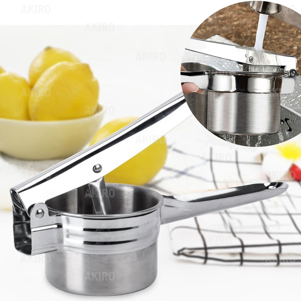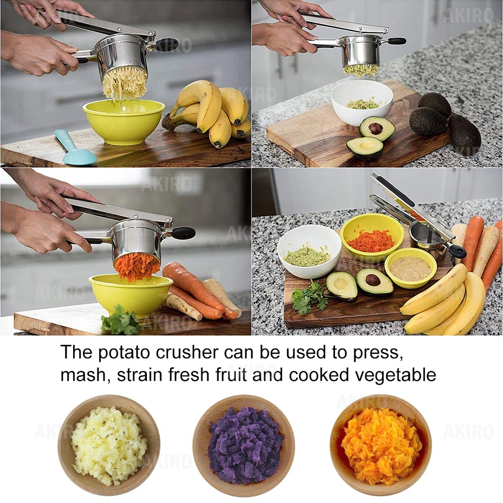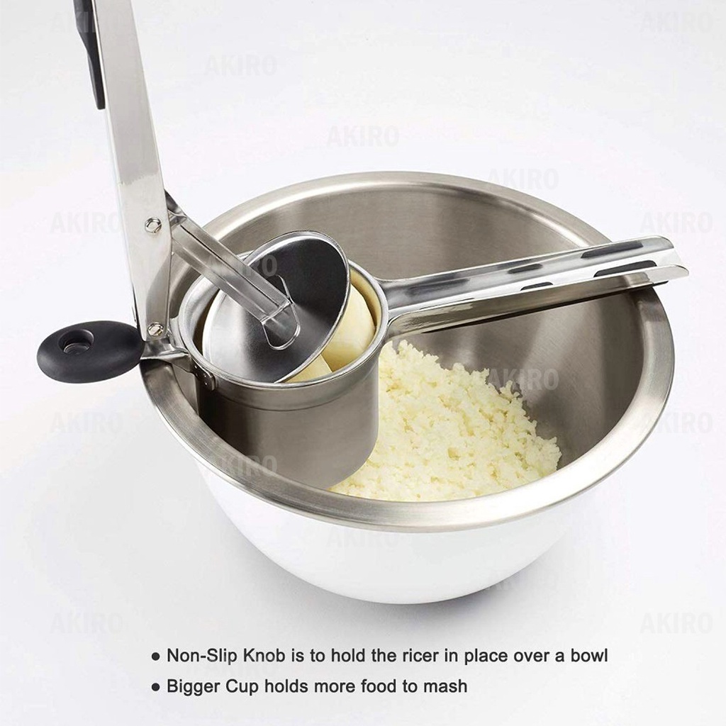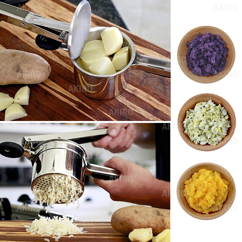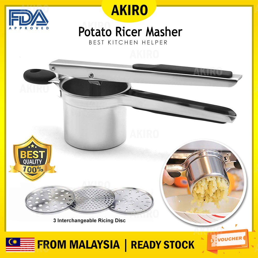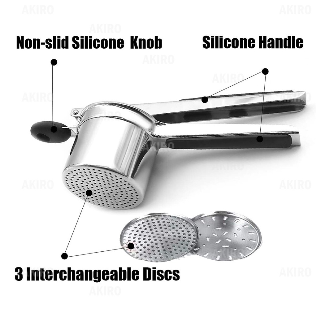 AKIRO Stainless Steel Potato Masher Food Press Strainer wt 3 Pieces Ricing Discs