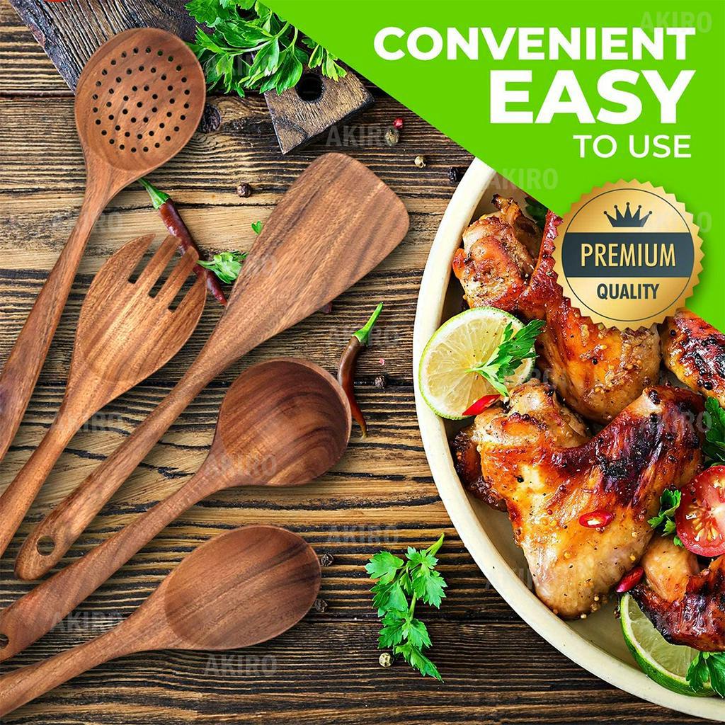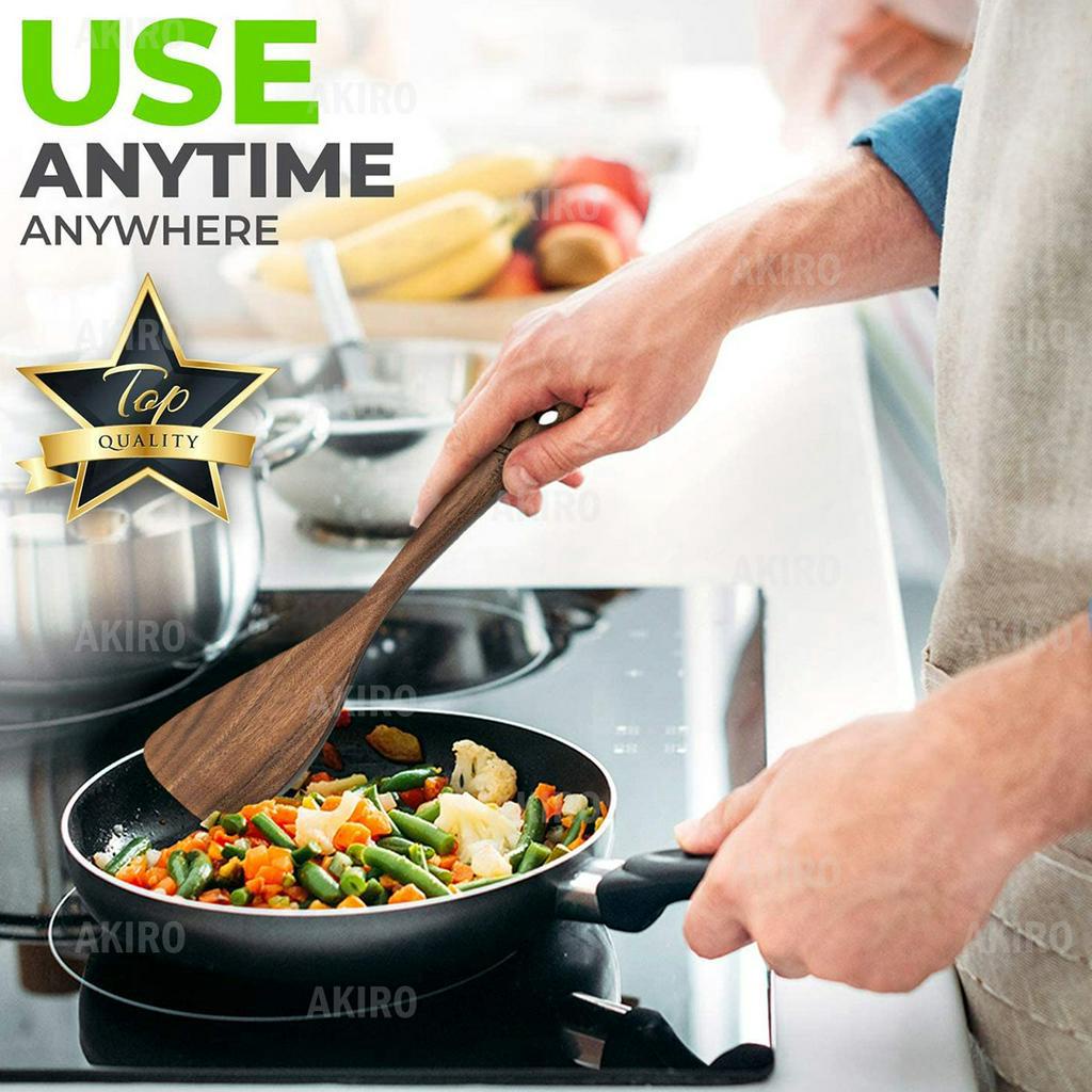 AKIRO Wooden Cooking Utensils Spatula Spoons Laddle Kitchen Cooking Tools Serving Tableware Alat Masak 锅铲天然木勺子