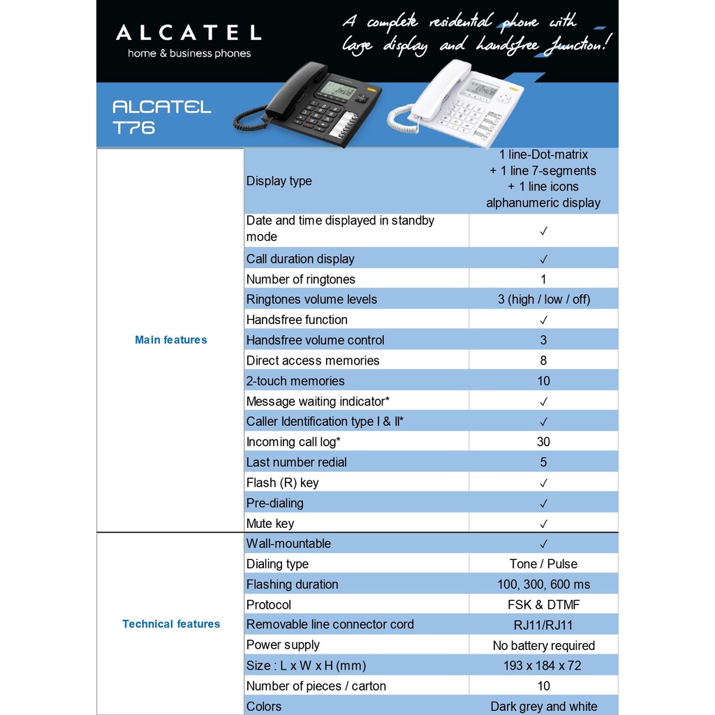 ALCATEL T76 Corded Phone with Handsfree Function, Caller ID, Large Display & Speaker Phone