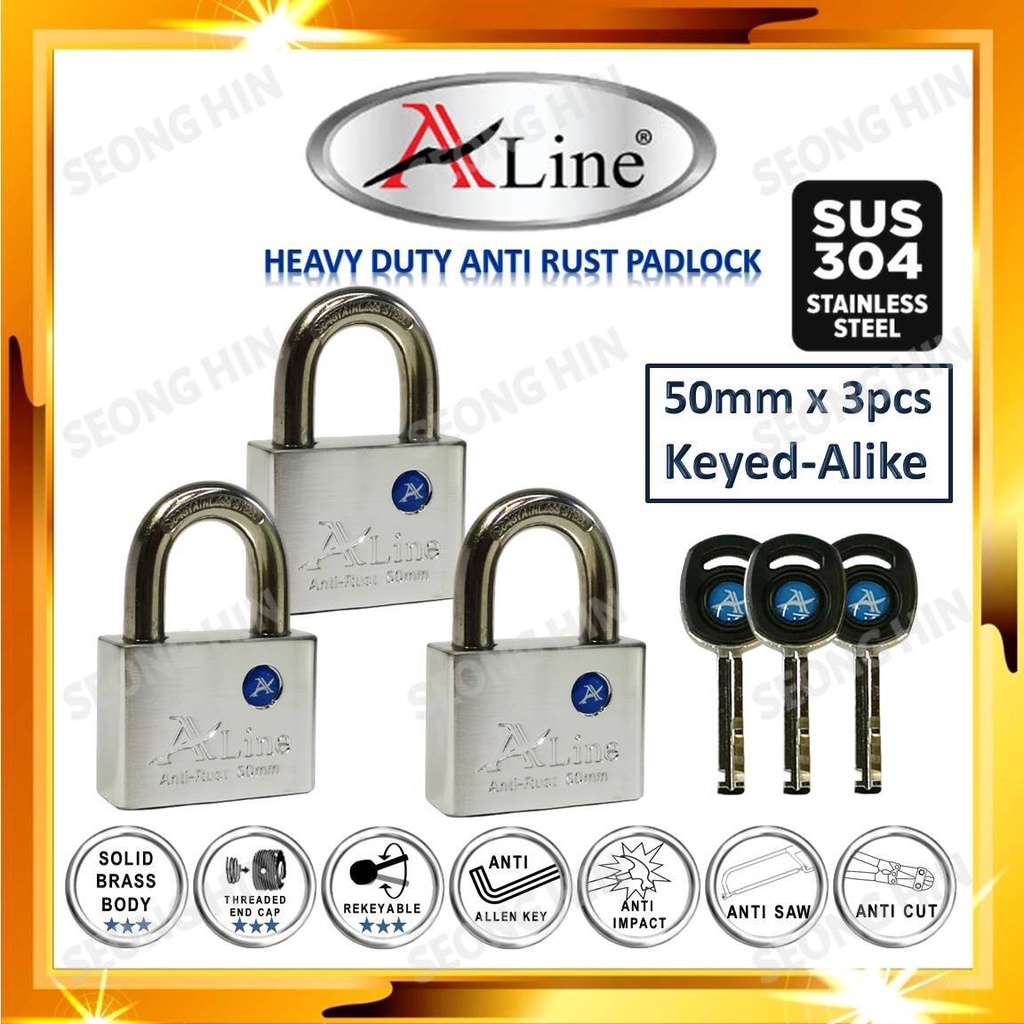 ALINE 50mm Stainless Steel Heavy Duty Anti Rust PadLock & Keyed Alike System KA2 KA3 KA4 KA5 AR50