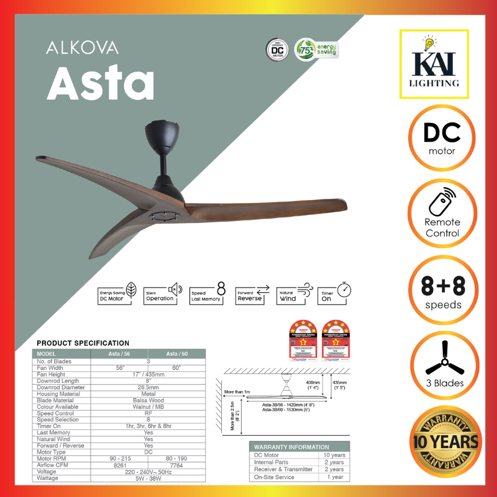ALKOVA (ALPHA) ASTA 56/60 inches Wood DC Remote Ceiling Fan, ALKOVA KS1