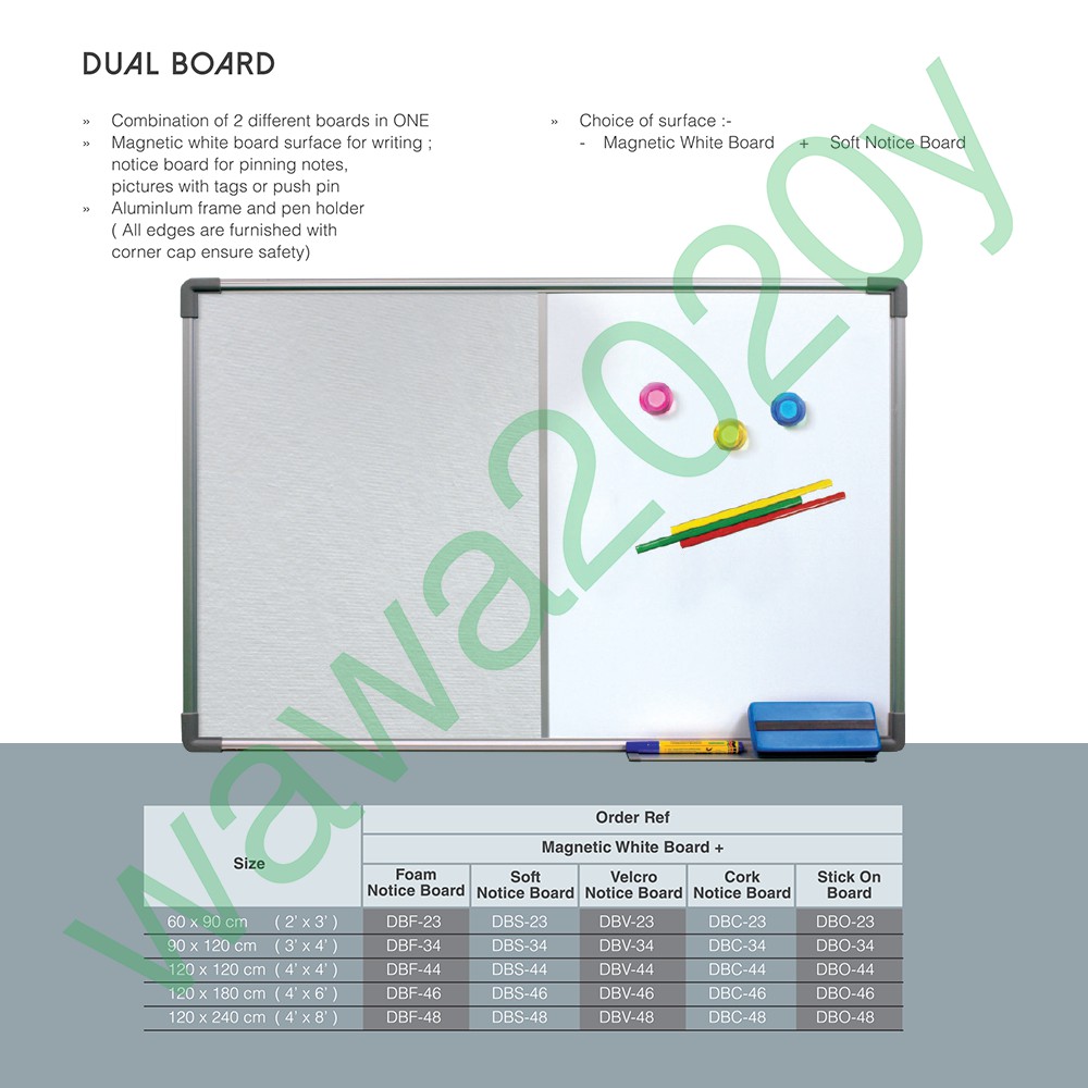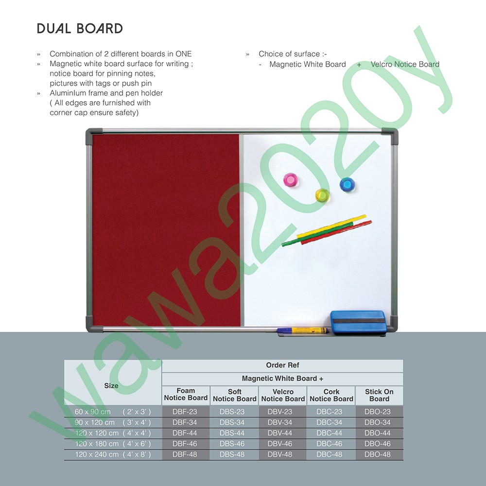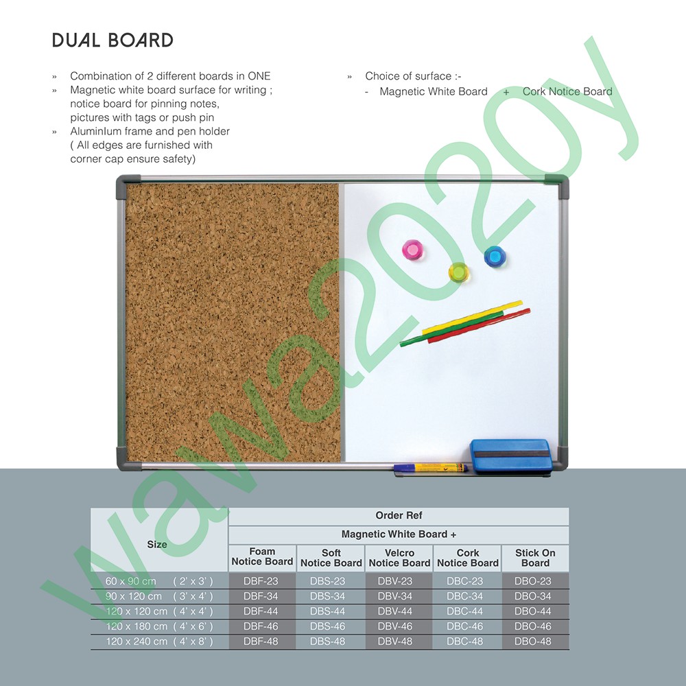 ALL SIZES Duel Board / 2 in 1 Magnetic Whiteboard and Notice Board /Notice Board/White Board