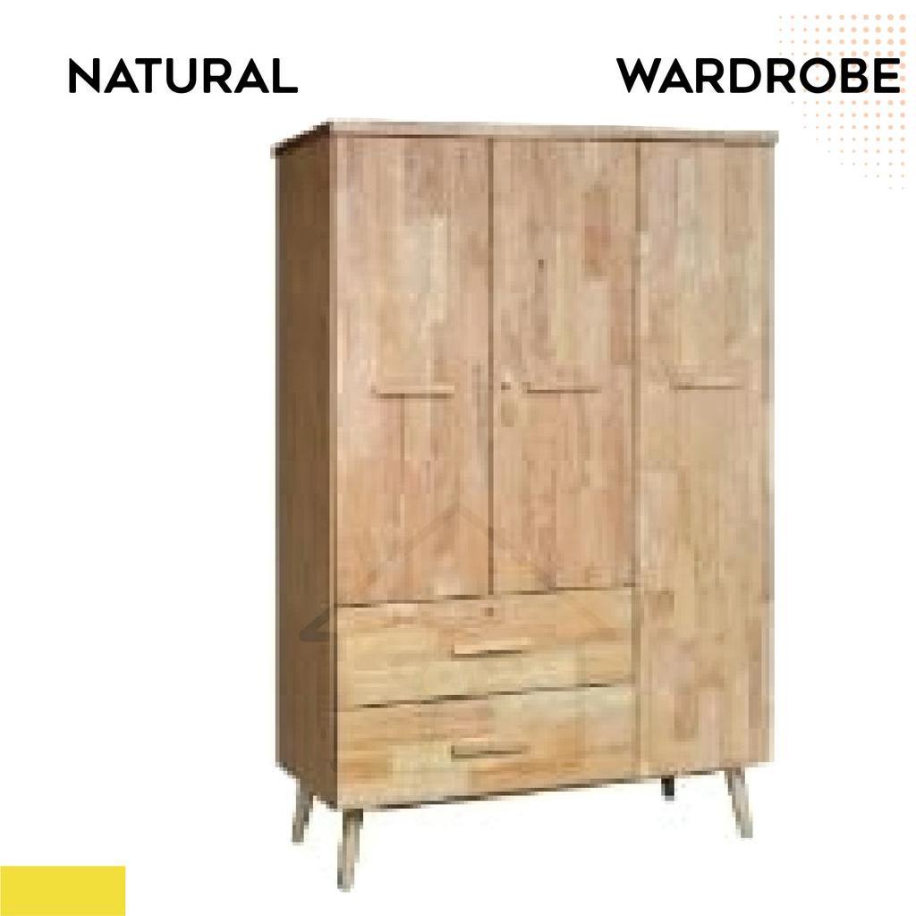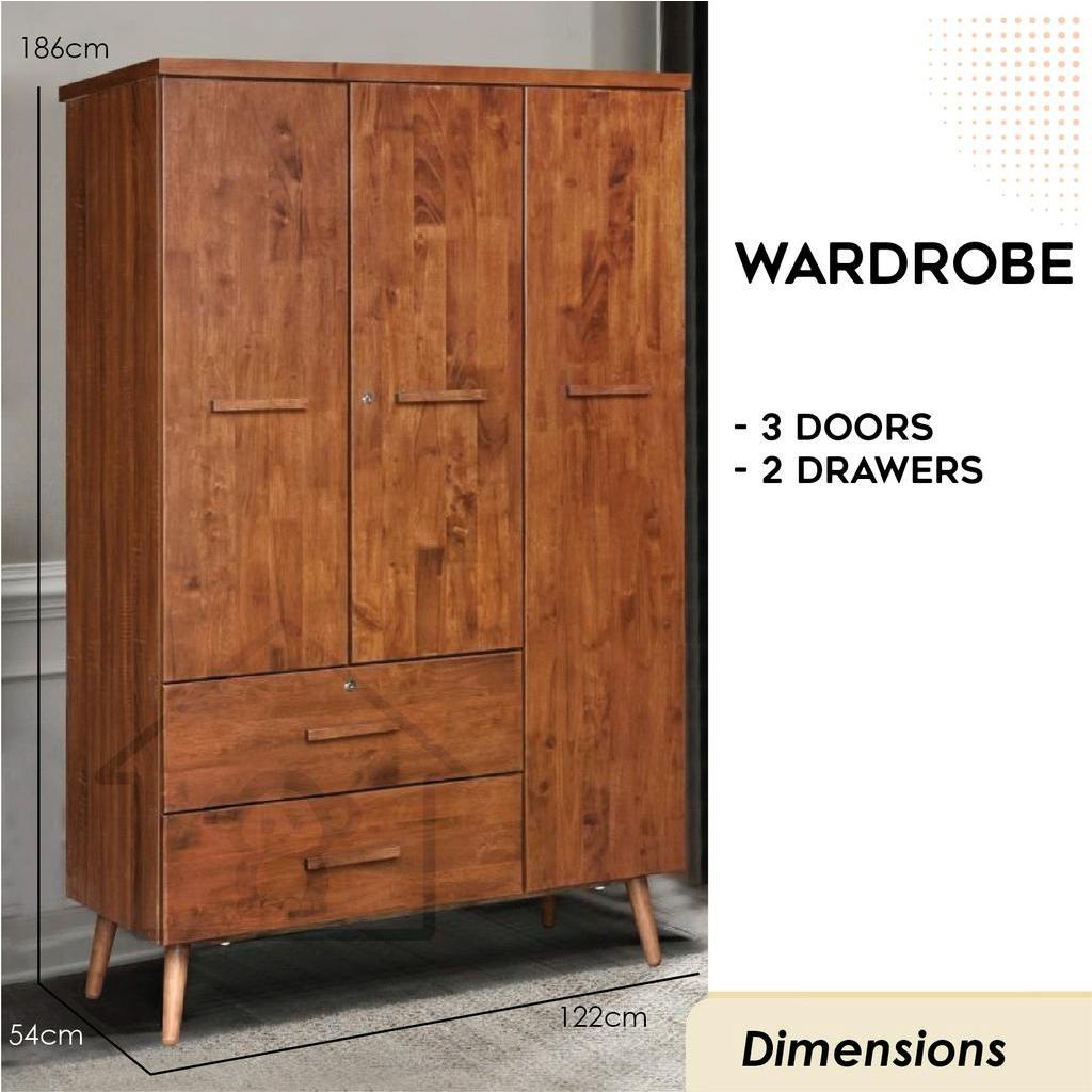ALMARI BAJU 3 PINTU & 2 LACI /WARDROBE RUSTIC NORDIC DESIGN 3 DOORS 2 DRAWERS/CLOTHS ORGANIZER/BEDROOM STORAGE CABINET