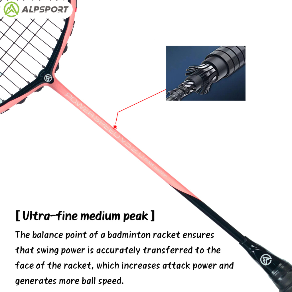 ALP V5 2.0 MXH 4U badminton racket Cushioning technology Ultralight offensive Carbon fiber Strung Pink Reket Rsl Yonex Liling Victor ALPSPORT racket original