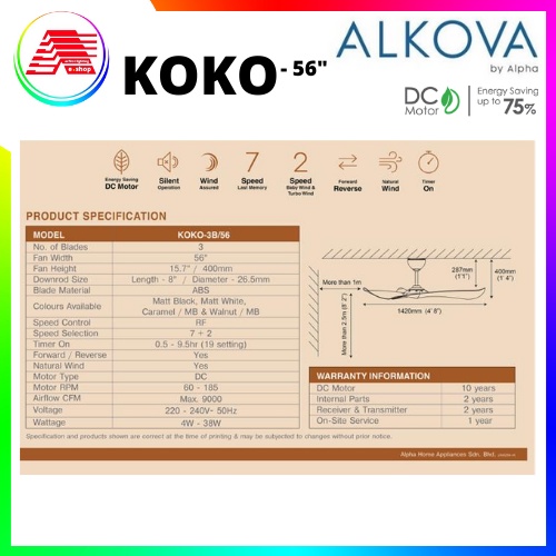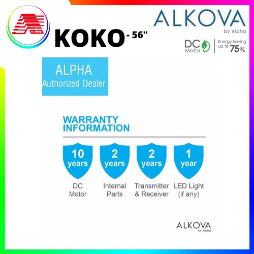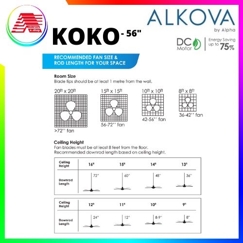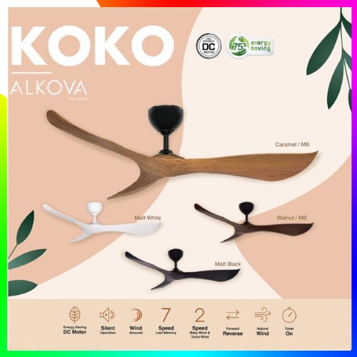ALPHA Alkova - KOKO 56 Inch DC Motor Ceiling Fan with 3 Blades Remote Fan 7speed
