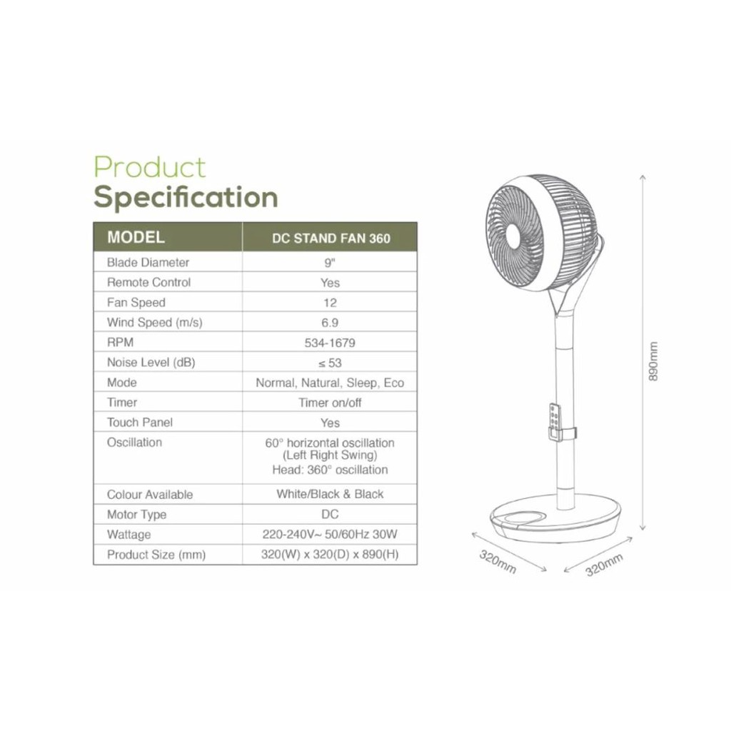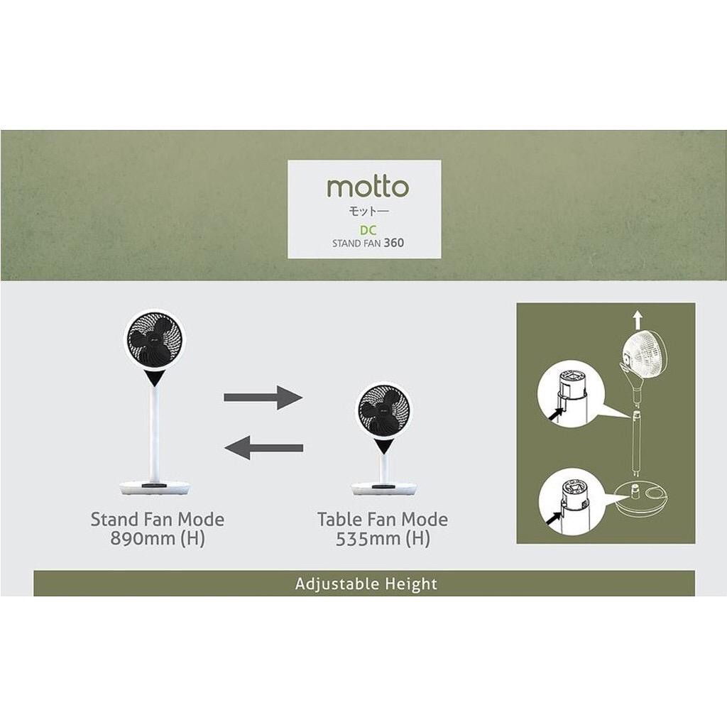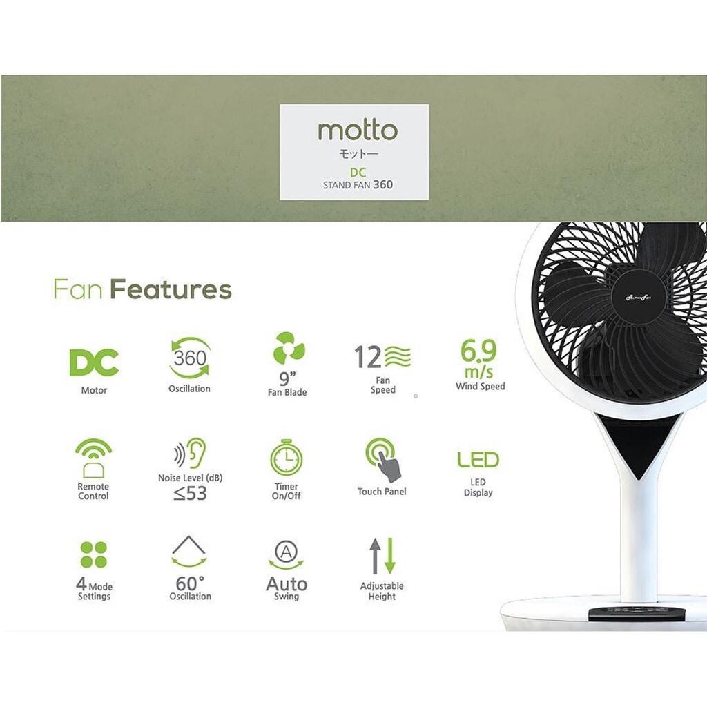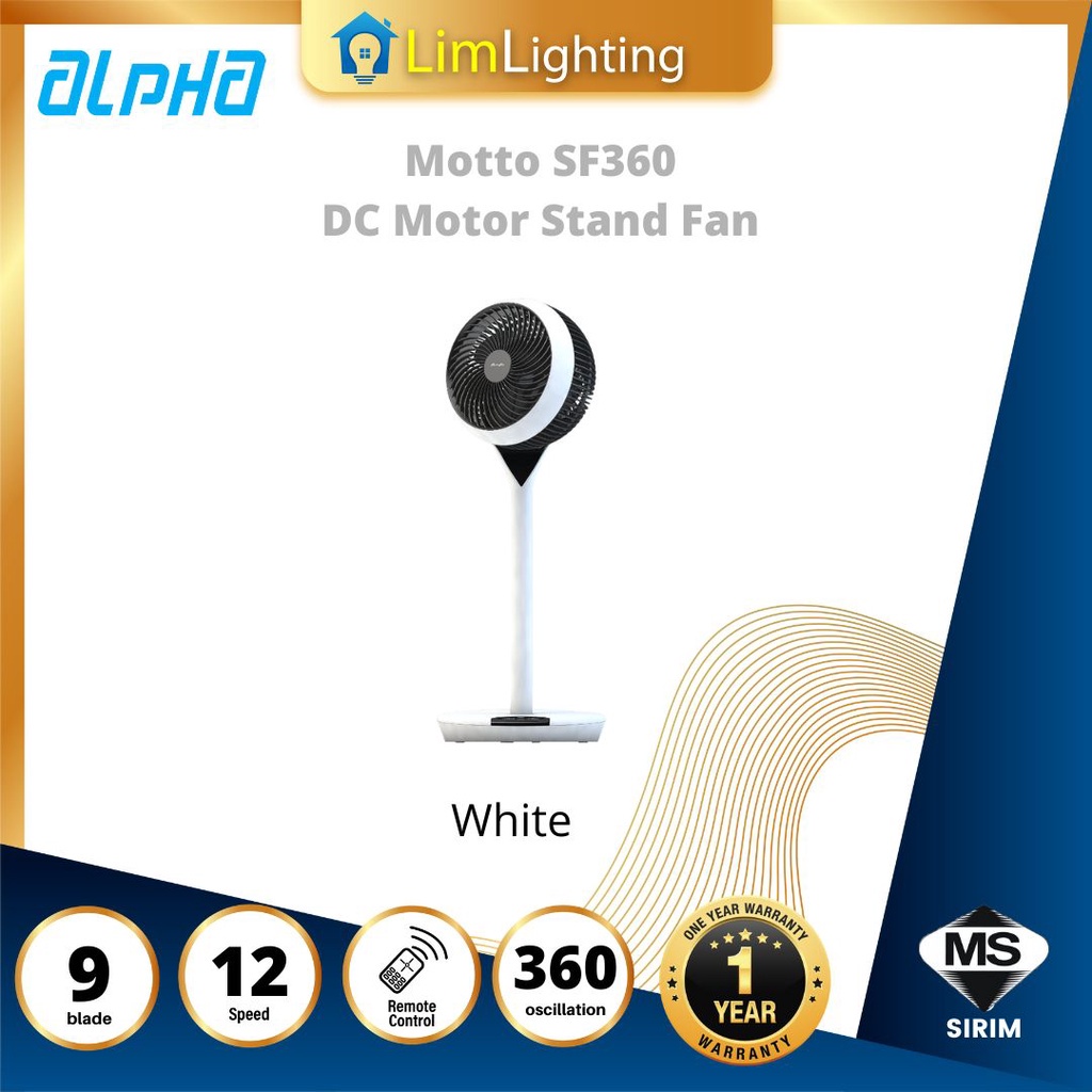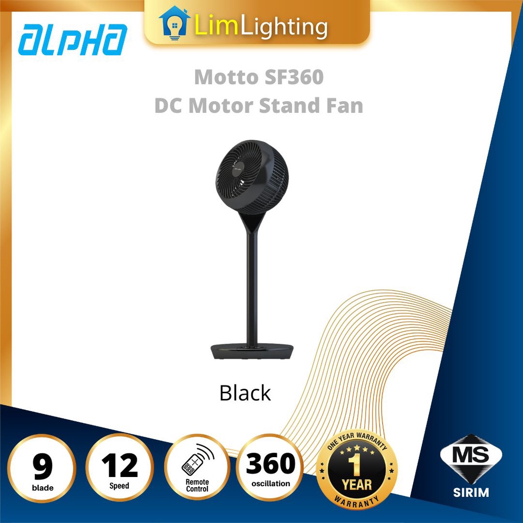 ALPHA Motto - SF360 DC Motor Stand Fan 9 Inch with 3 Blades (12 Speed Remote)