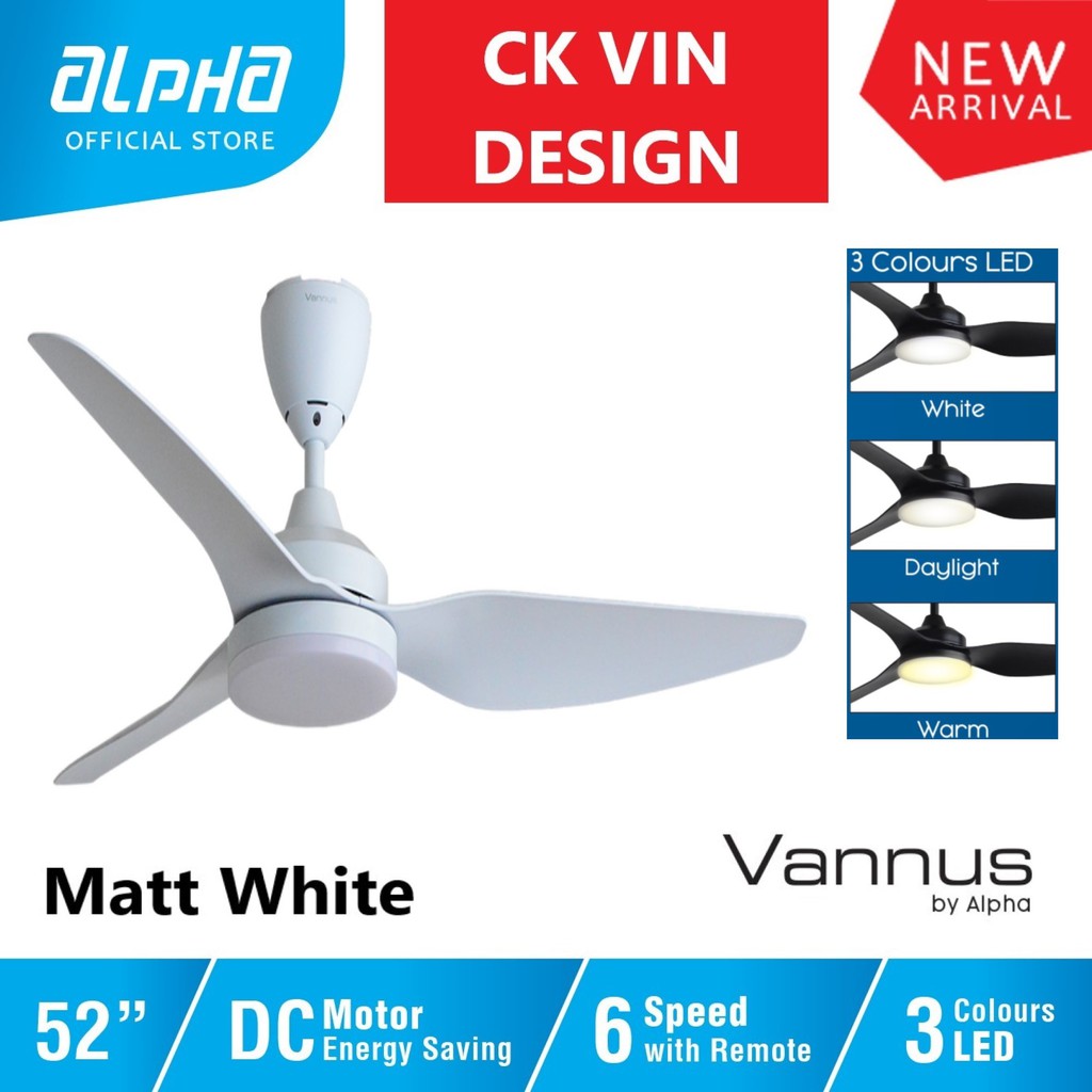 ALPHA Vannus - VC3 LED 3B 52 Inch 3 Colours LED DC Motor Ceiling Fan with 3 Blades (6 Speed Remote)