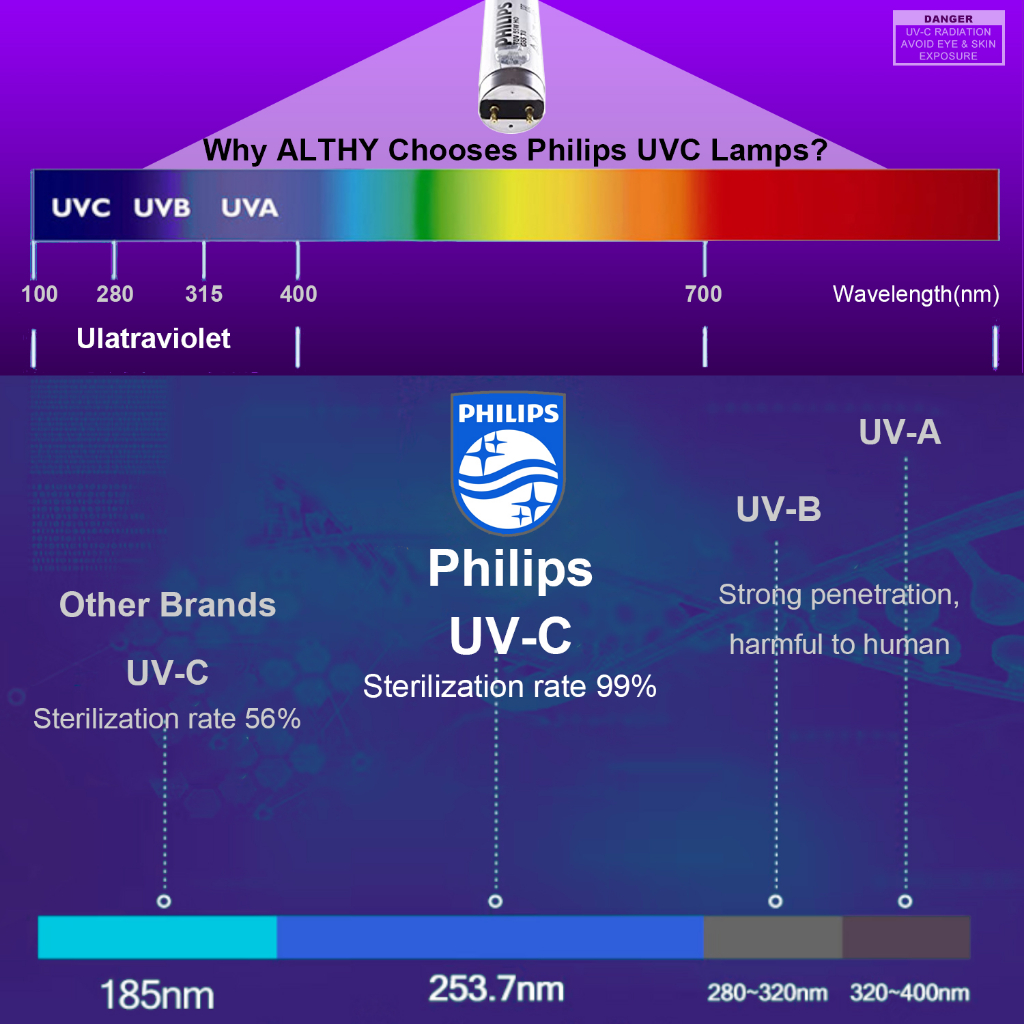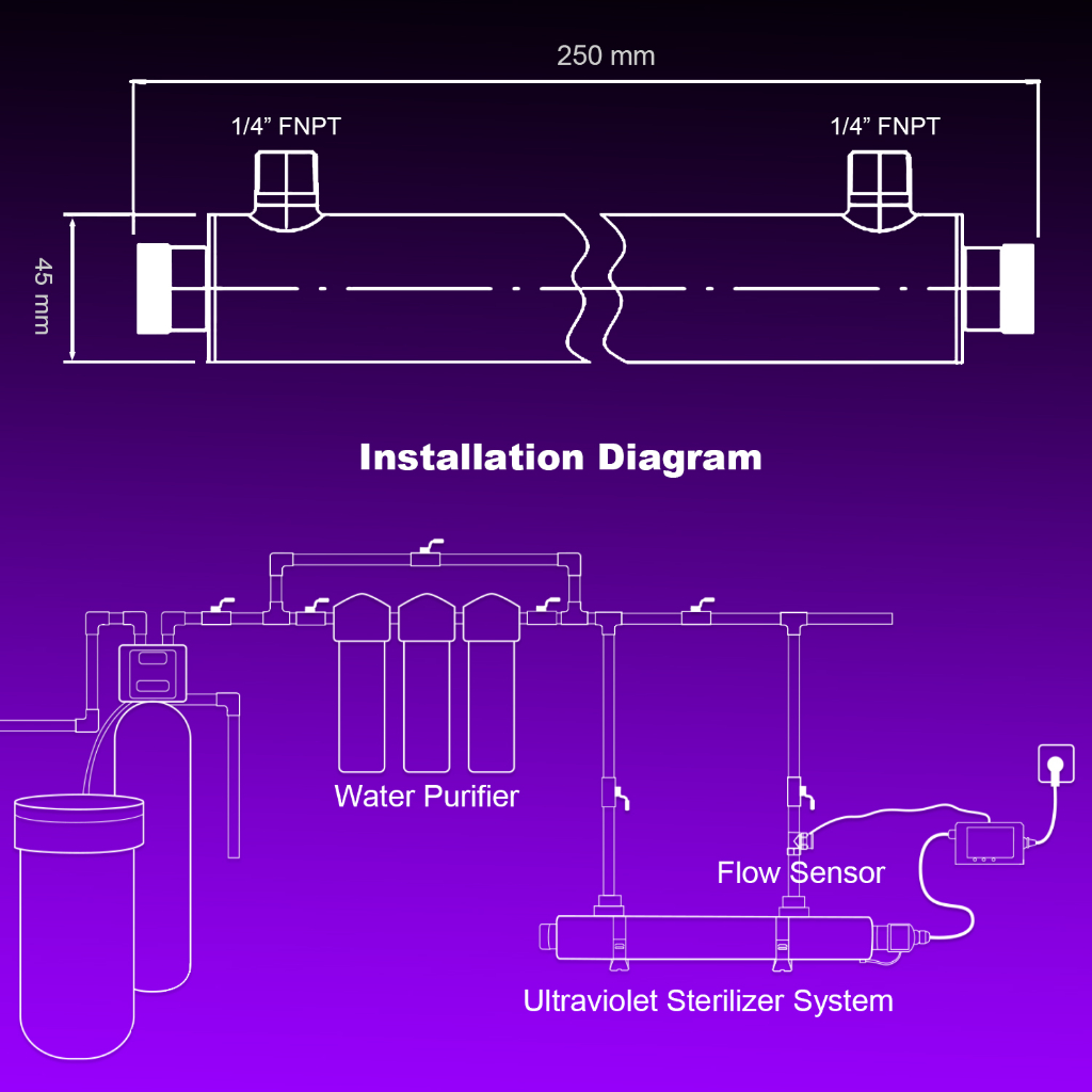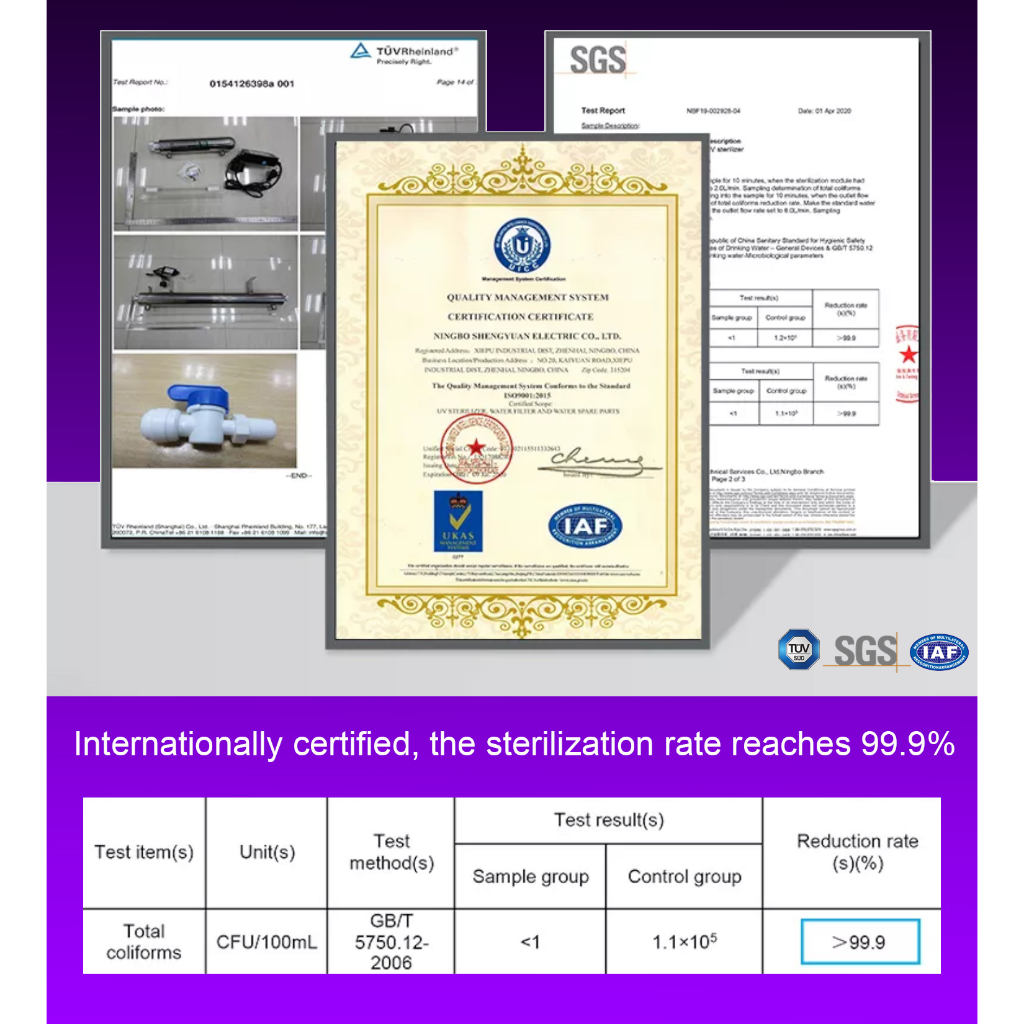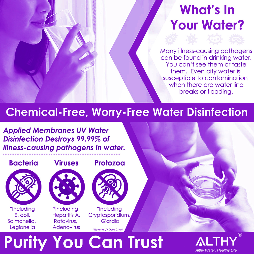 ALTHY UV Water Sterilizer System UV Tube Lamp Ultraviolet Light Purifier Disinfection Filter +Smart Flow Control Switch , Stainless Steel, 1GPM For Drinking Water