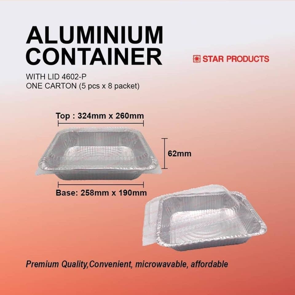 ALUMINIUM TRAY / FOIL TRAY / FOOD TRAY / BUFFET / ALUMINIUM FOOD CONTAINER WITH LID / 4602-P / 5 PCS